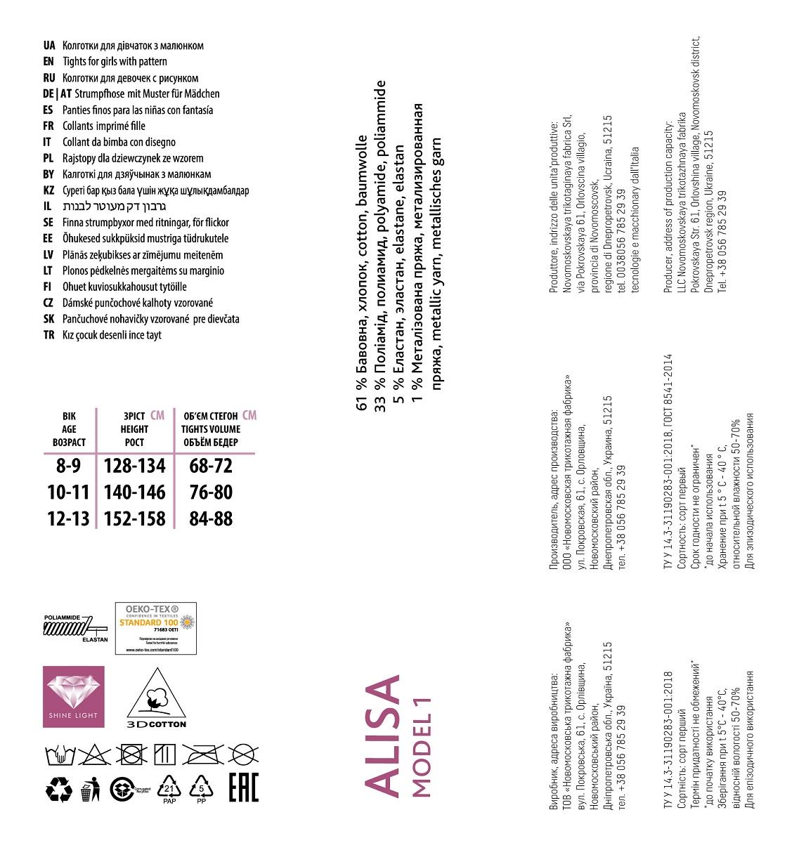 | Состав | 63% хлопок, 31% полиамид, 4% метализированная пряжа, 2% эластан |