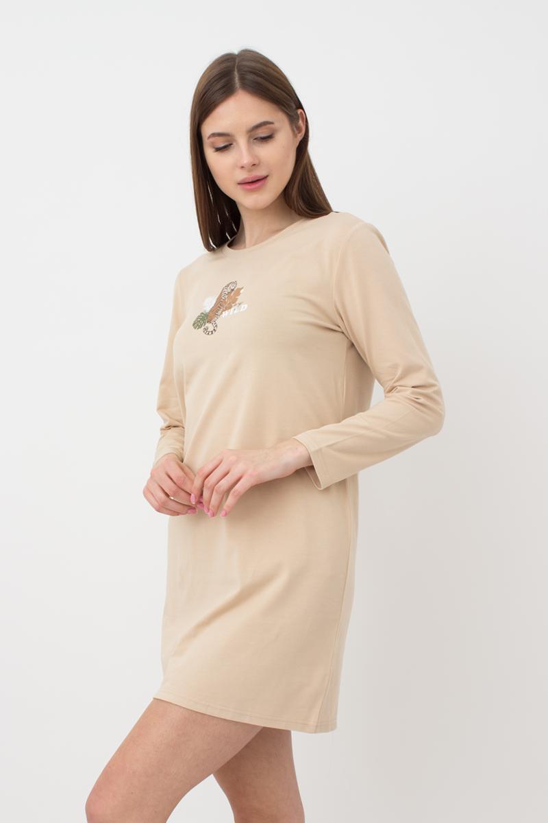 Ночная рубашка хлопковая с рукавами Amour 8309/010 Giulia (beige)
