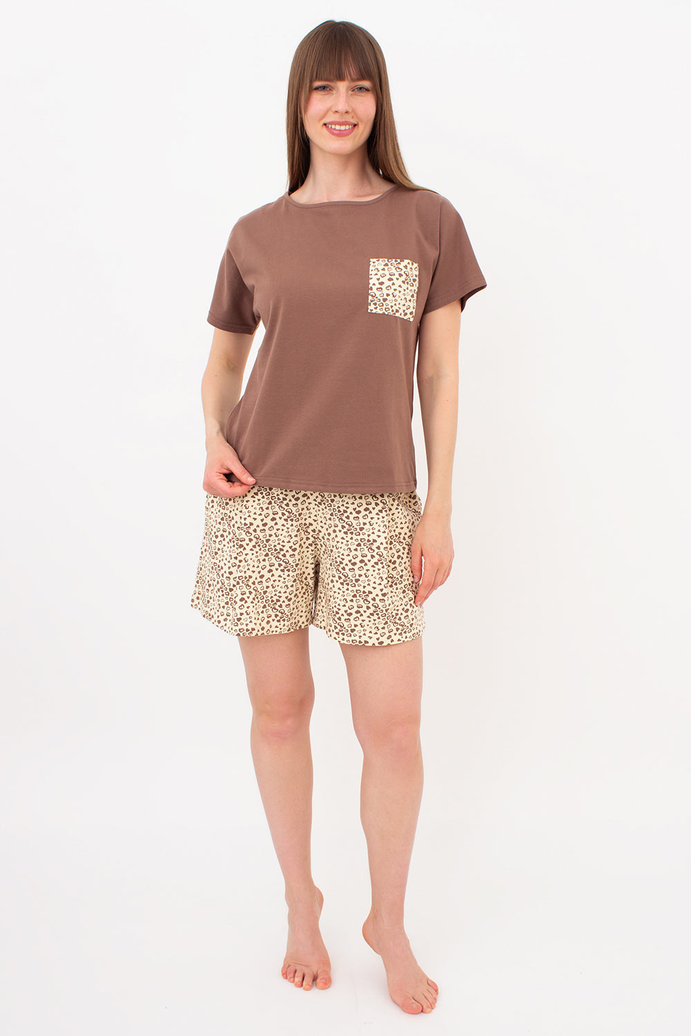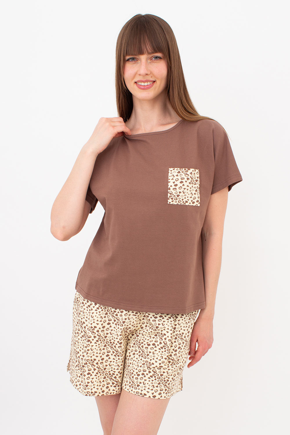 Хлопковая пижама с шортами в сердечках WHISPER HEARTS 6127/010 Giulia (pale yellow/brown hearts/mokko), желтый/коричневый