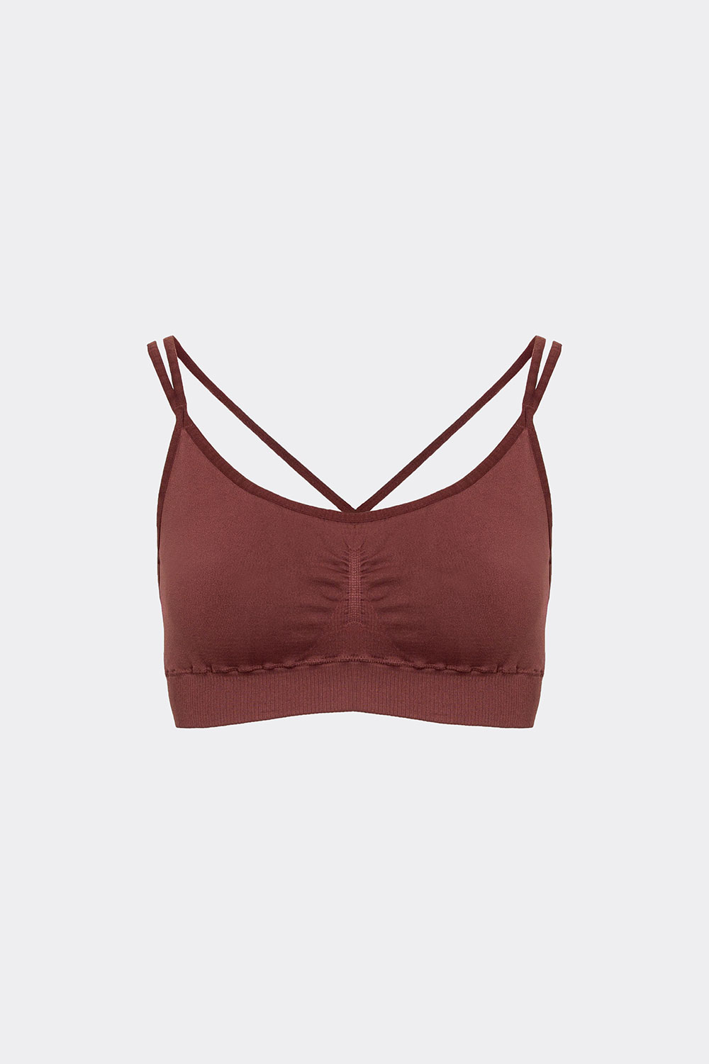 Перекрестная конструкция бретелей на спине распределяет нагрузку, обеспечивая комфорт даже во время прыжков.
