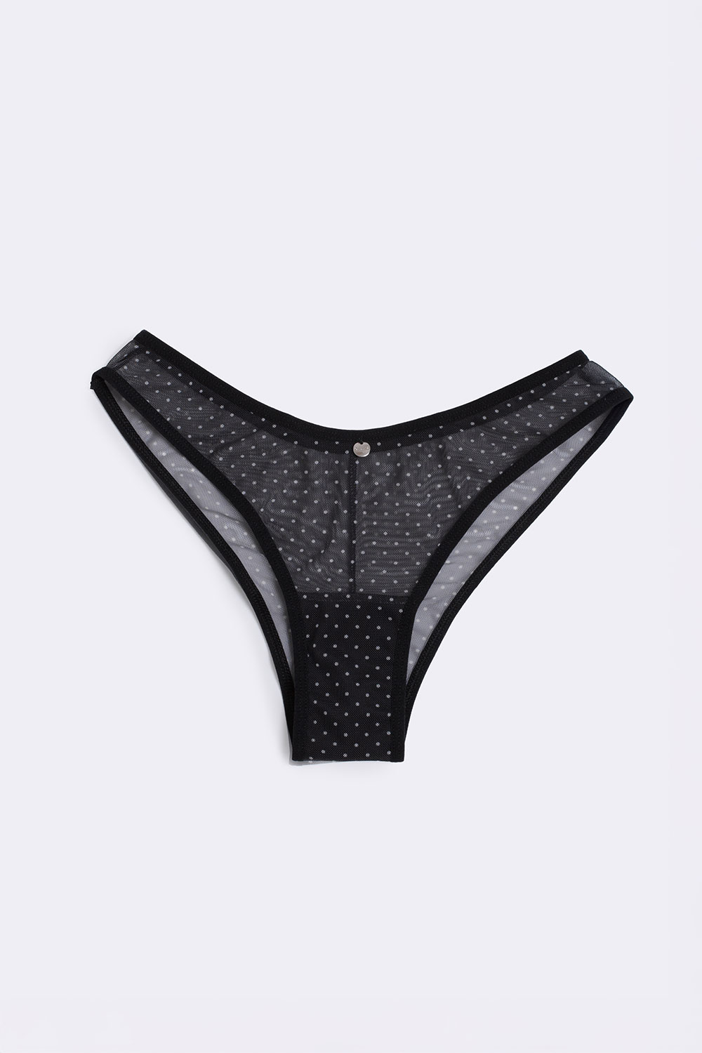 Трусики бразилиана из полупрозрачной сетки с деликатным принтом в горошек.