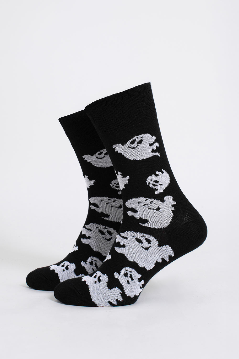 Милые призраки по всей длине носка создают праздничную атмосферу с первого взгляда.