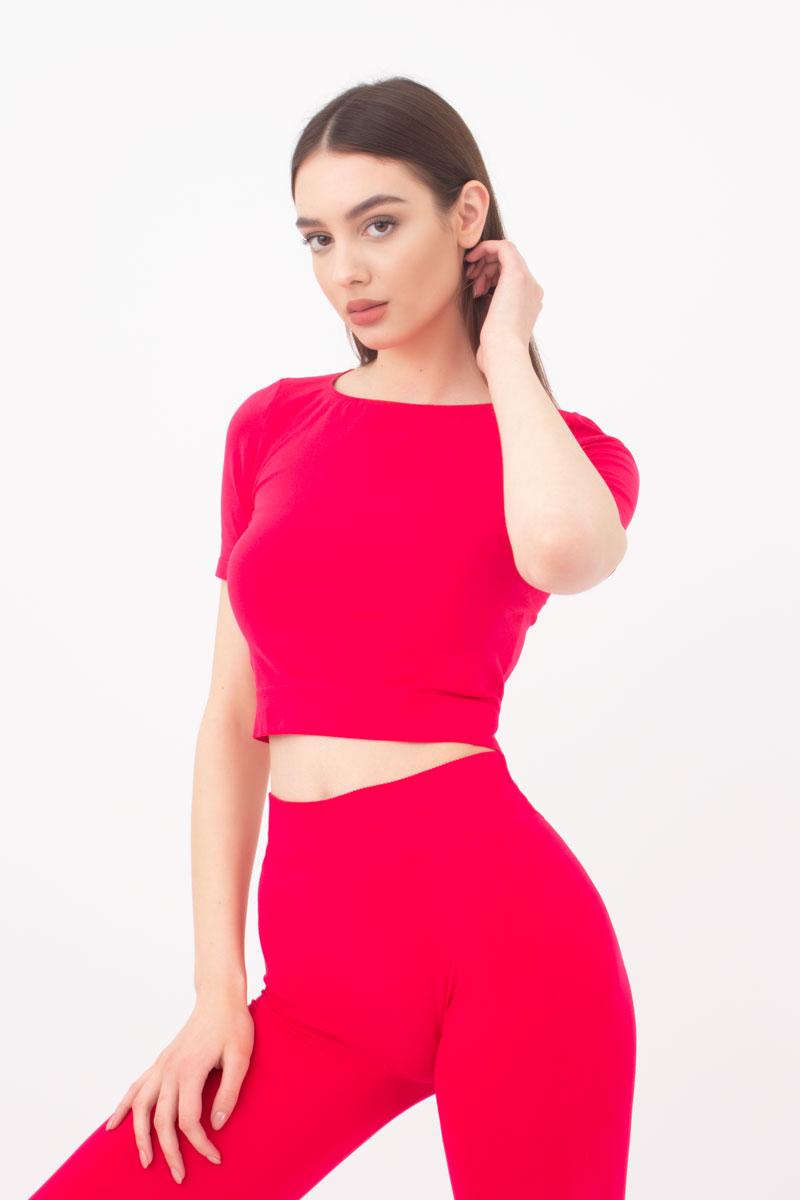Топ с коротким рукавом и круглым вырезом Crop t-shirt Giulia (raspberry sorbet)