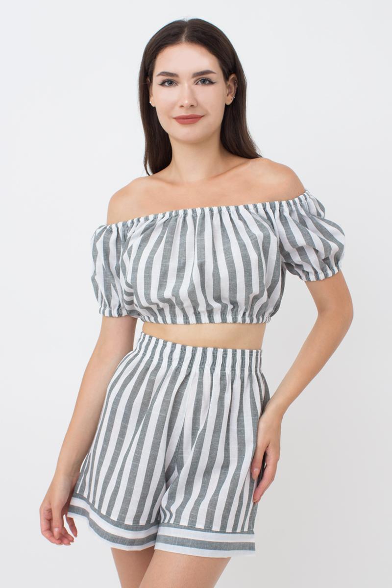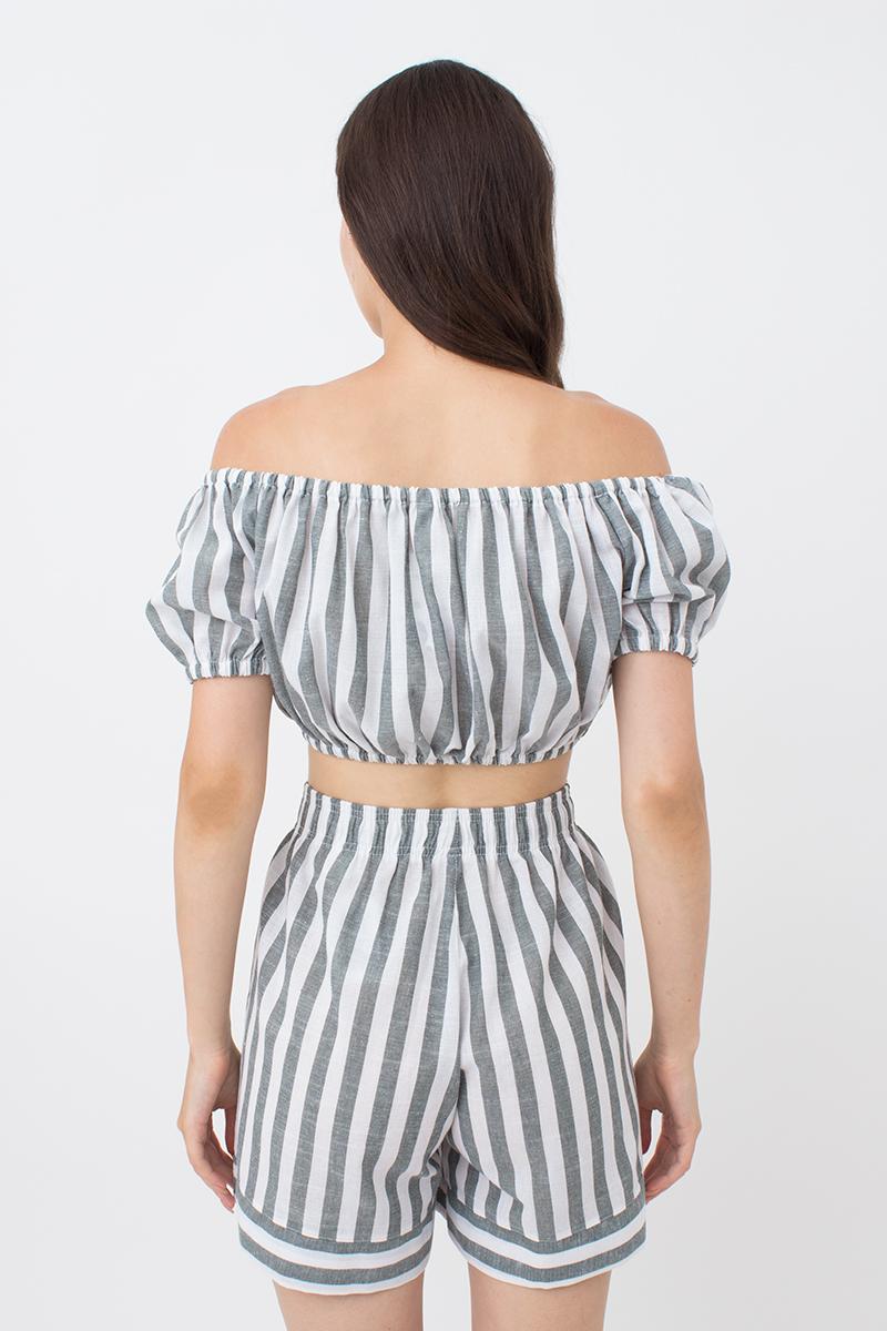 Кроп-топ хлопковый объемный с коротким рукавом Cruise 4106/220 (white/green stripe)