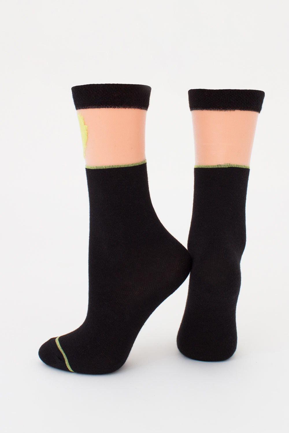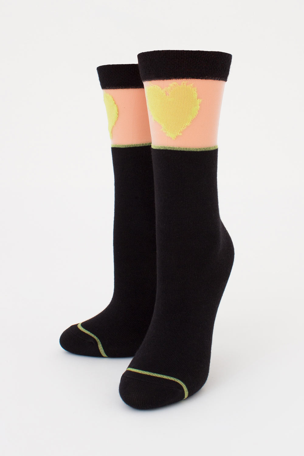 Детские гольфы с сердечком на прозрачной вставке KG1 CRISTAL 007 Giulia (nero/lime), черный/желтый