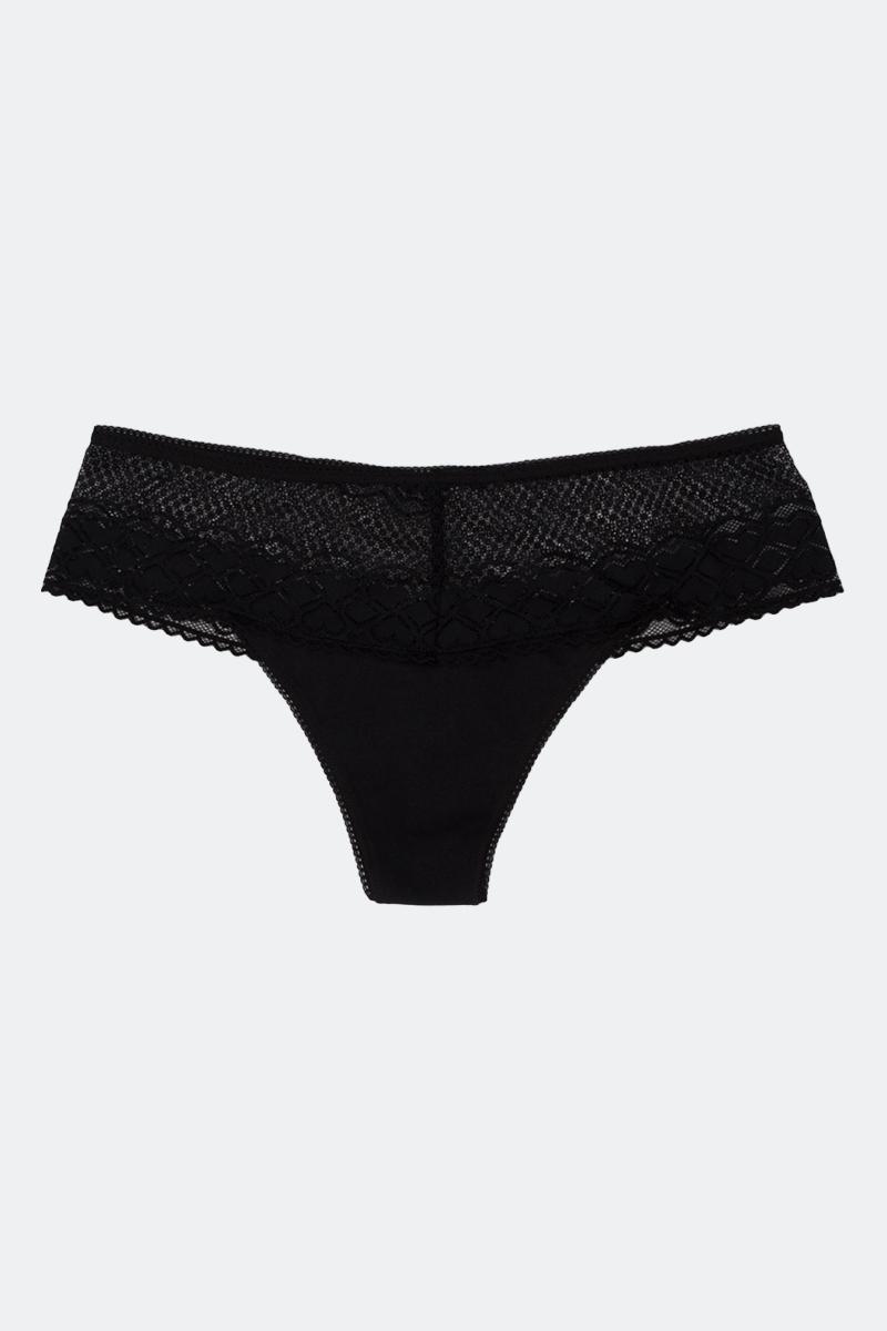 Трусы-стринги из кружева и хлопка.