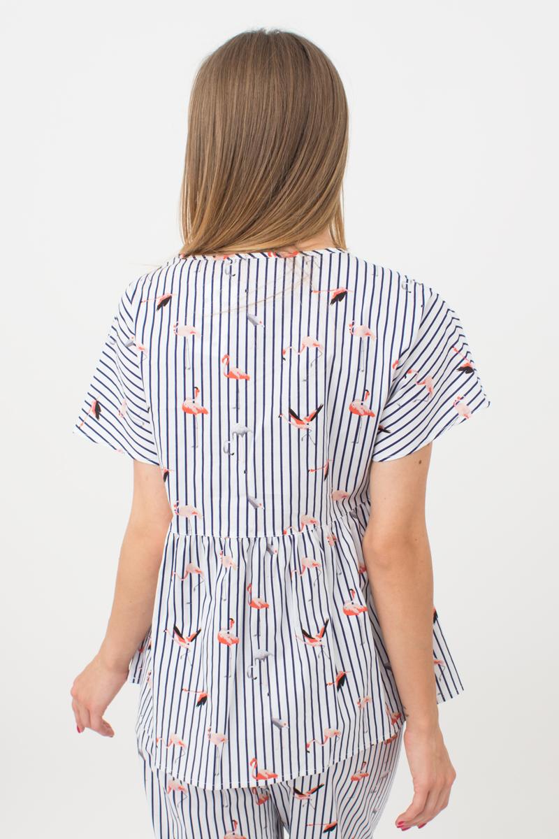 Женская хлопковая блуза FLAMINGO 4808/010 Giulia (dark blue stripe), синий