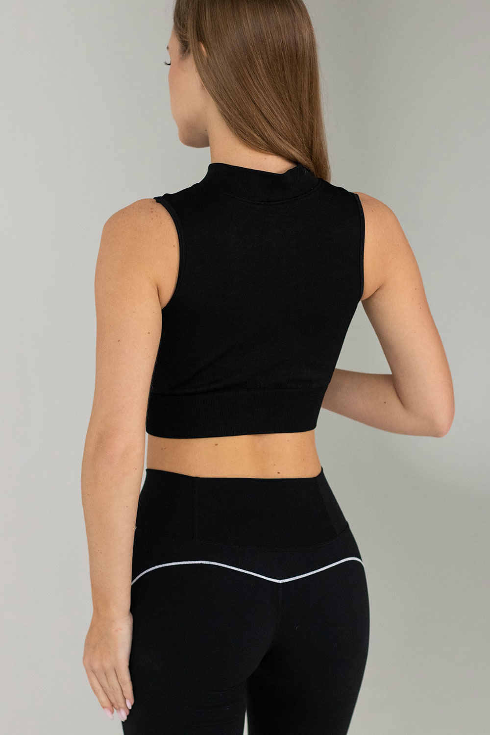 Без рукавов (майка) и кроп-длина обеспечивают максимальную свободу движения и отличное сочетание с леггинсами с высокой талией.