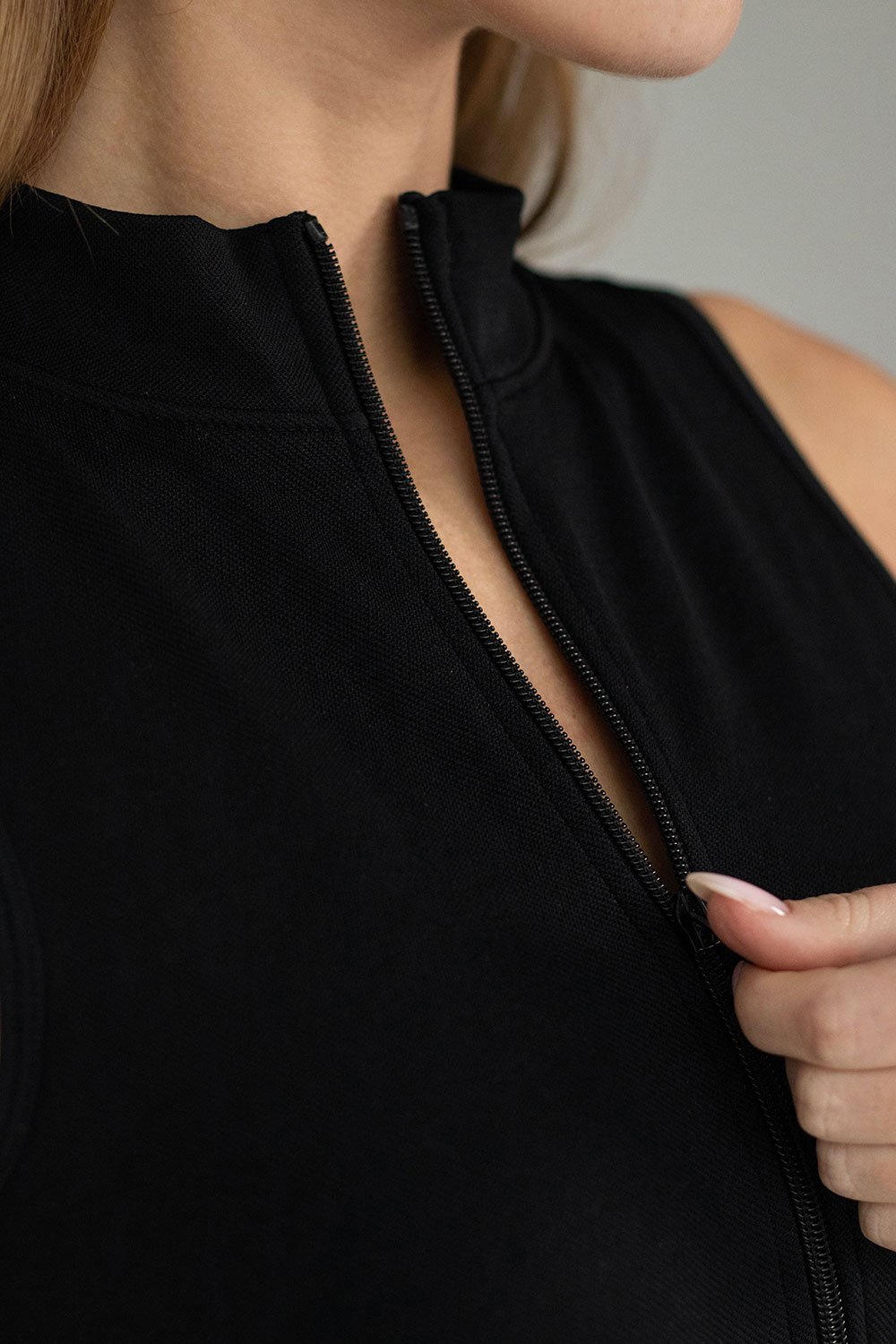 Вертикальная молния спереди позволяет легко регулировать уровень вентиляции и быстро надевать/снимать топ.