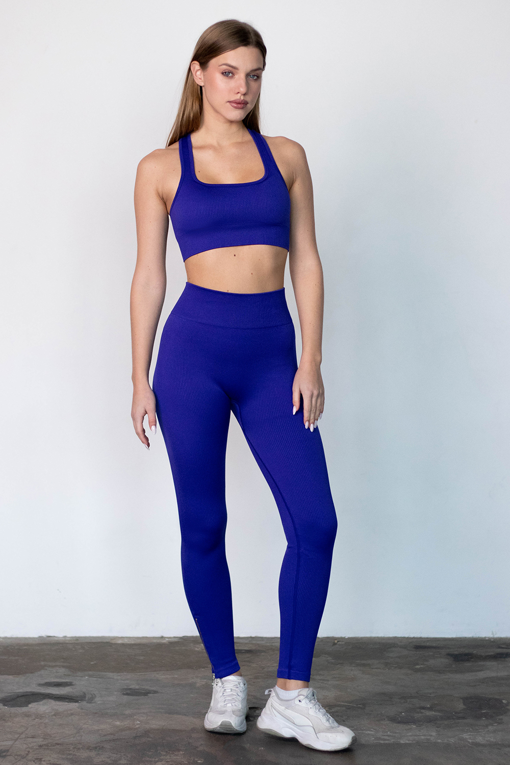 Леггинсы имеют высокую посадку и широкий компрессионный пояс, который надежно фиксирует, визуально корректирует силуэт.