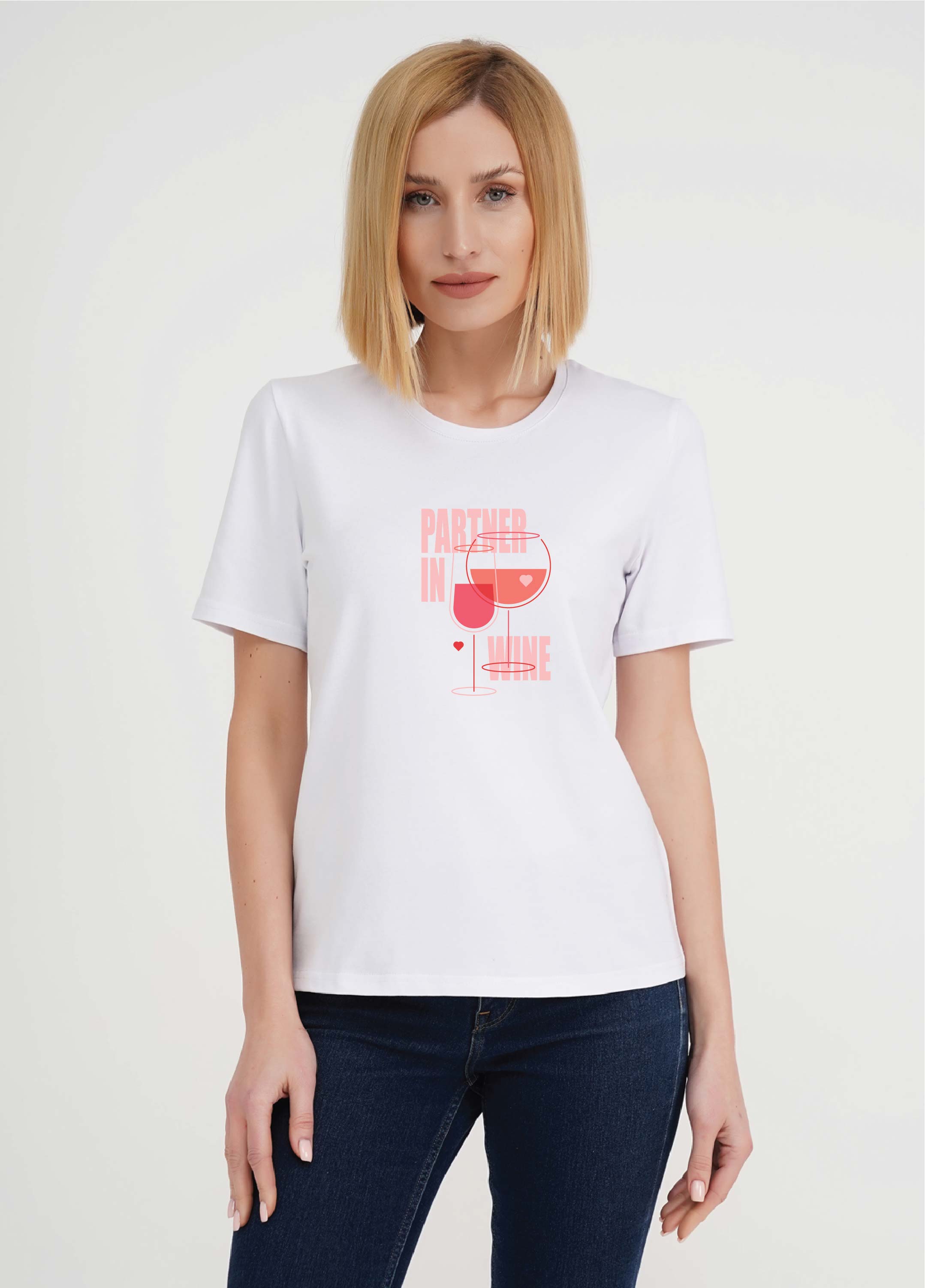 Футболка женская с надписью "Partner in wine" T-SHIRT WOMEN UNIQUE PRINT 4802/010 (white W00013), белый