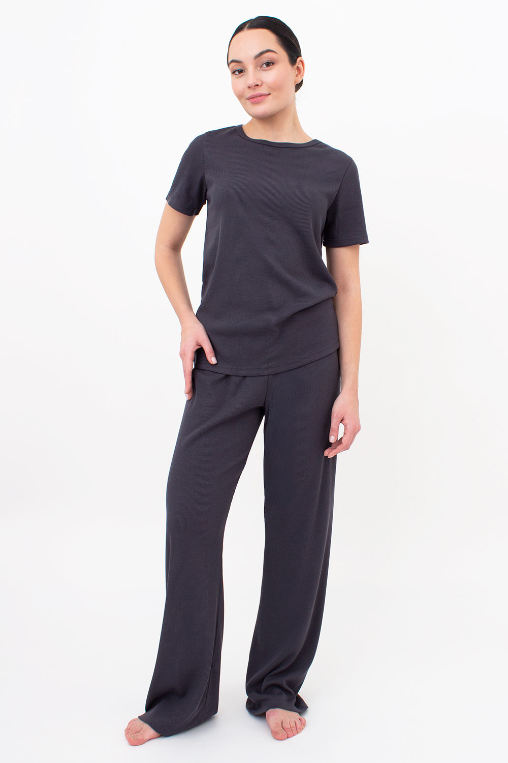 Женская футболка в рубчик – идеальный выбор для удобного и стильного образа.