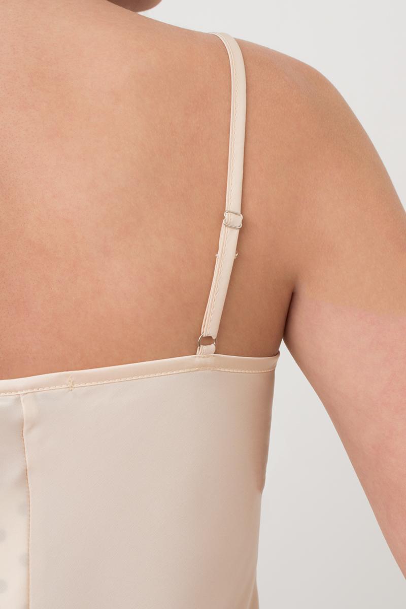 Бретели узкие, регулируемые, не отстегиваются.
