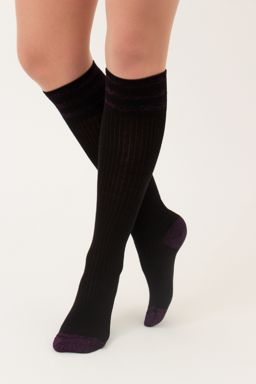 Гольфы имеют контрастную отделку пятки и мыска, придающую даже самому простому образу изысканный вид.