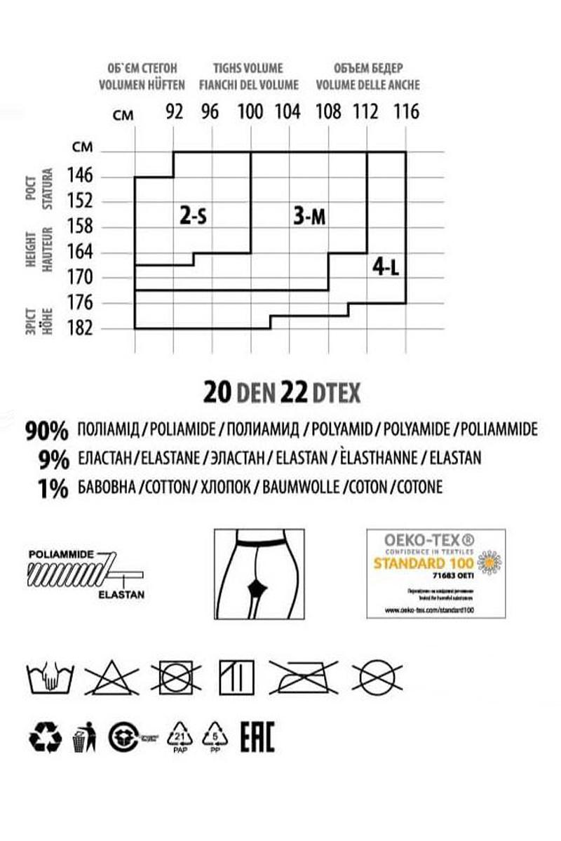 Плотность нити 20 DEN - колготки подчеркивают стройность ножек.
