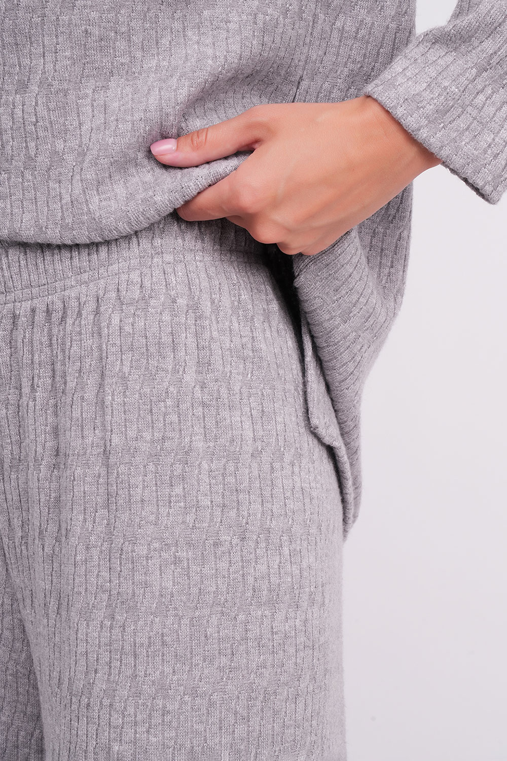 Декоративный узор «коса» придаёт образу выразительную фактуру и утончённый шарм. Этот комплект станет отличным выбором как для уютного отдыха дома, так и для прогулок или неформальных встреч.