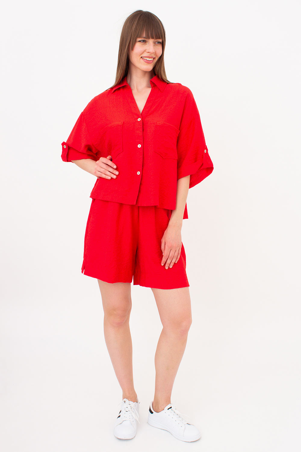 Комплект из жатого льна (рубашка и шорты) VOYAGE 6601/220 Giulia (red), красный