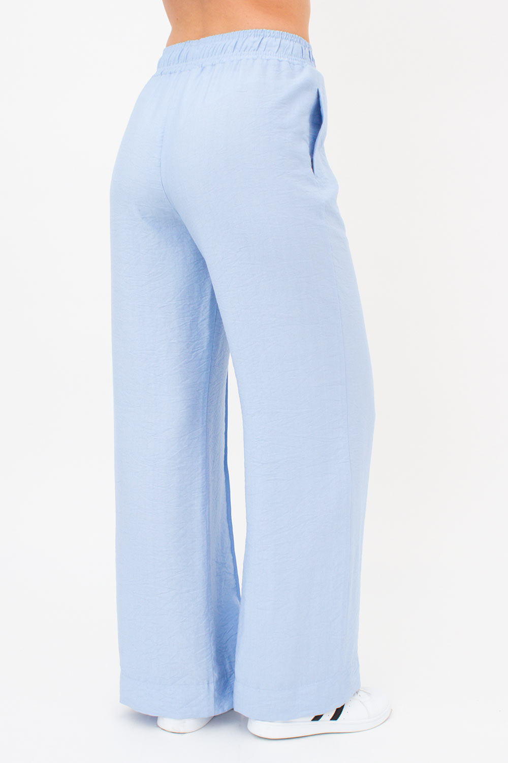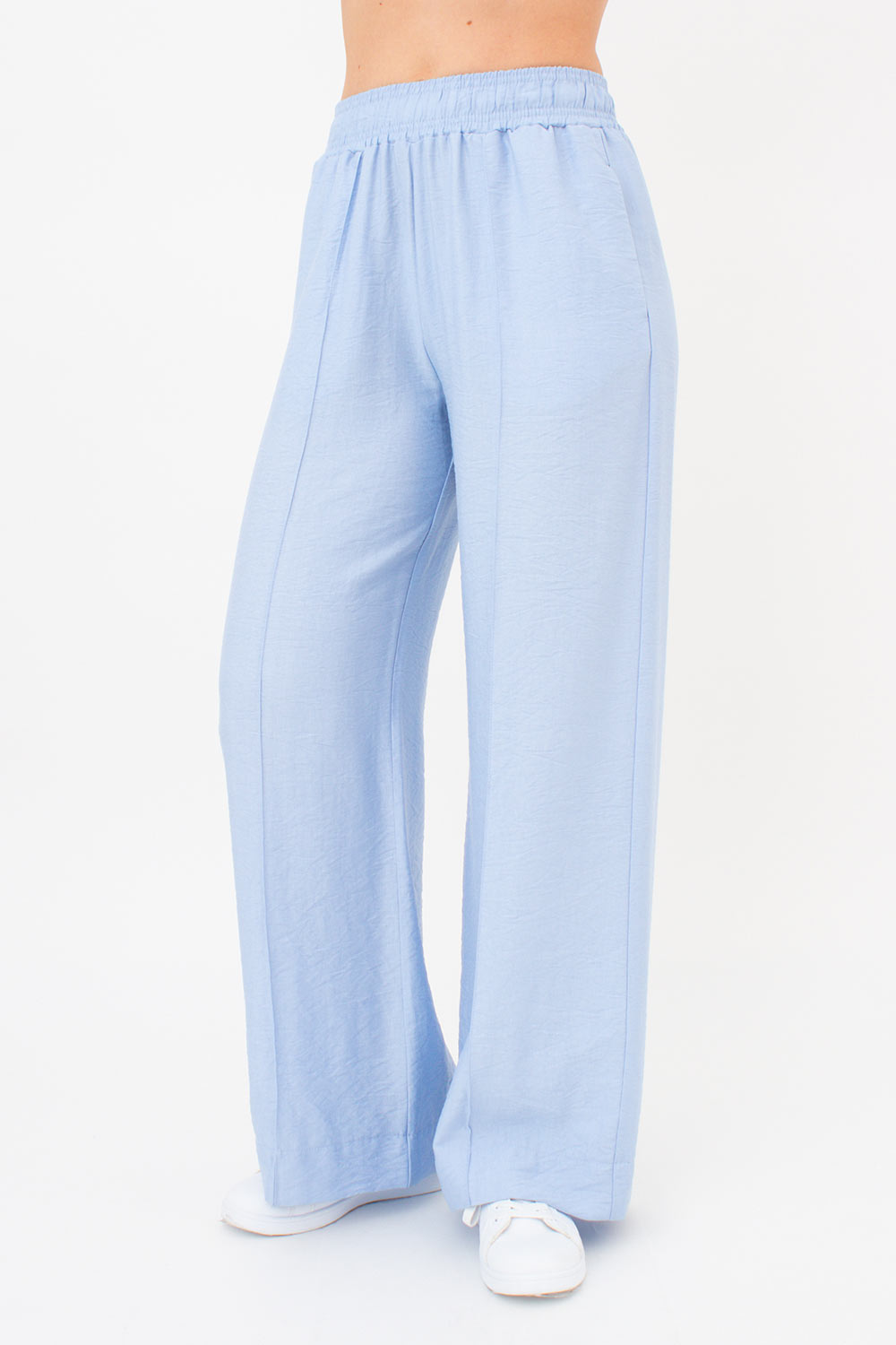 Штаны с эластичным поясом на резинке, боковыми карманами и стрелками спереди создают элегантный и комфортный образ.