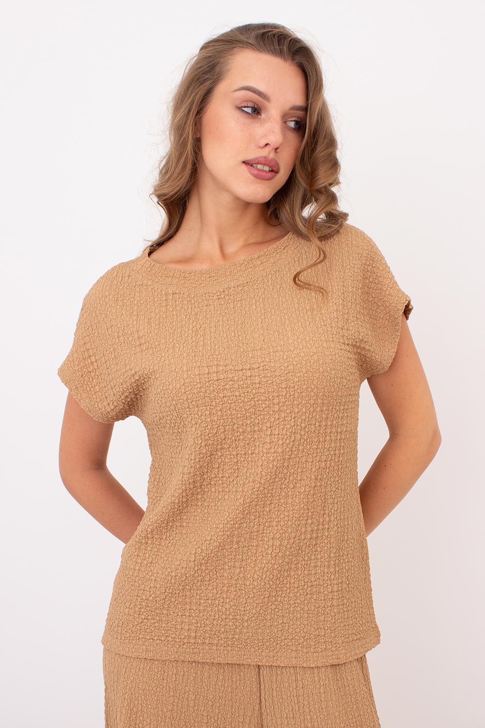 Комплект из жатой ткани (футболка и штаны) WHISPERED FOLDS 5123/260 Giulia (dark beige), бежевый