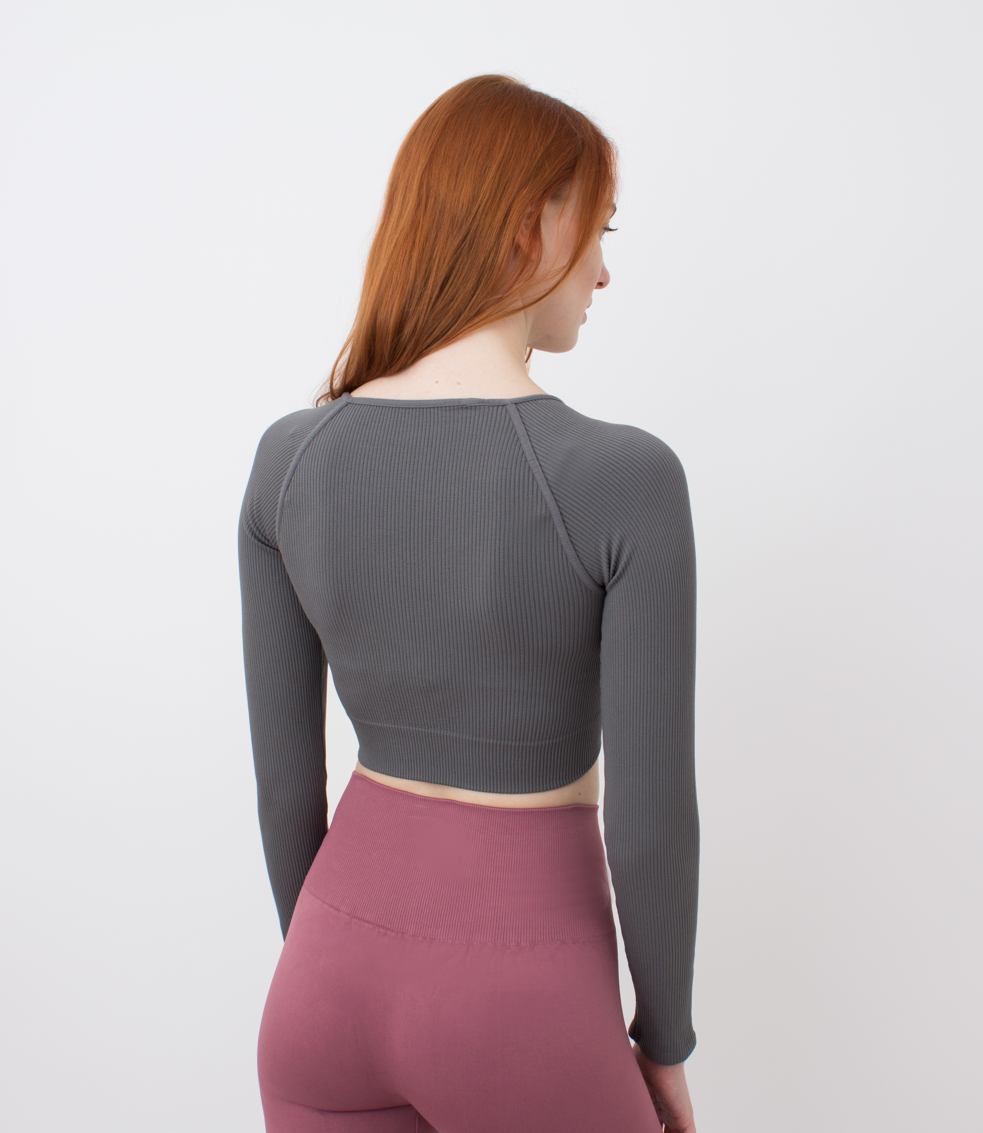 Кроп-топ лонгслив в рубчик CROP TOP RIB poppy seed (серый)