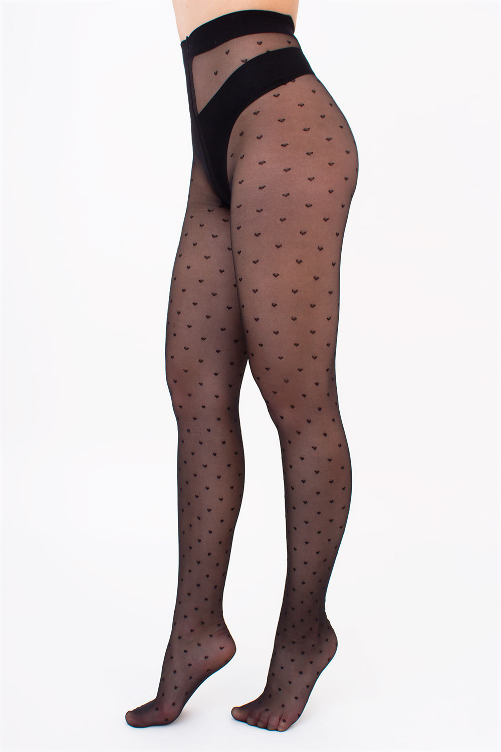 Тонкие эластичные колготки 20 DEN с симметричным рисунком из мелких сердец - маленький нюанс, способный добавить вашему наряду немного провокативности и изысканности.