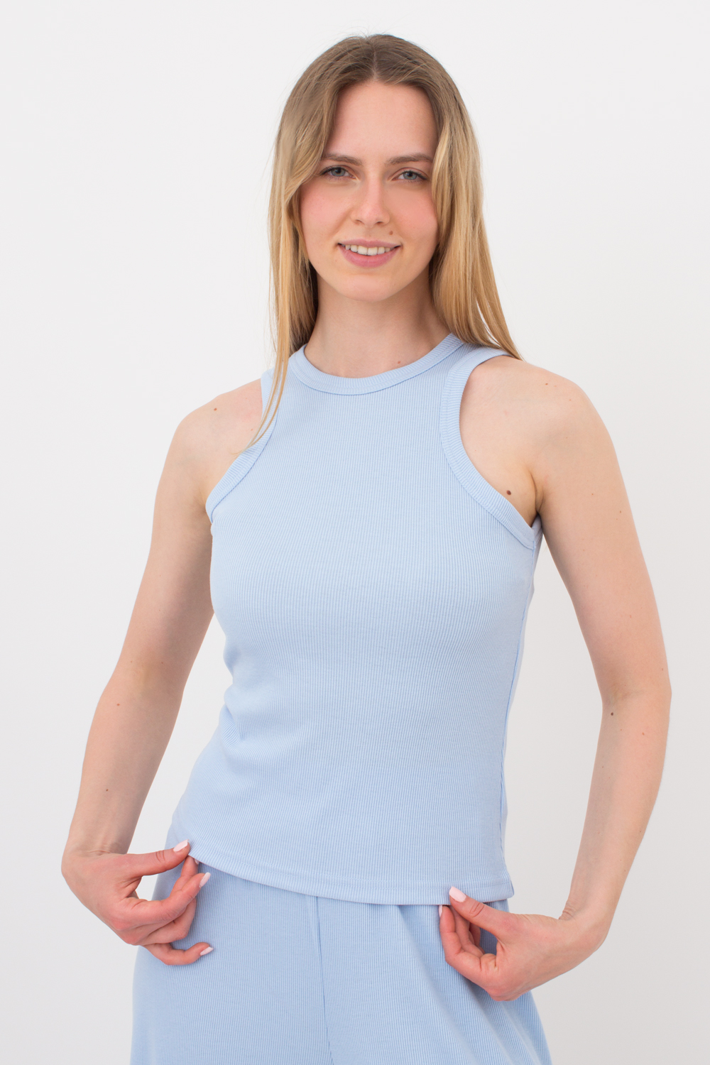 Женская майка из хлопка в рубчик RIB 3814/010 Giulia (light blue), голубой