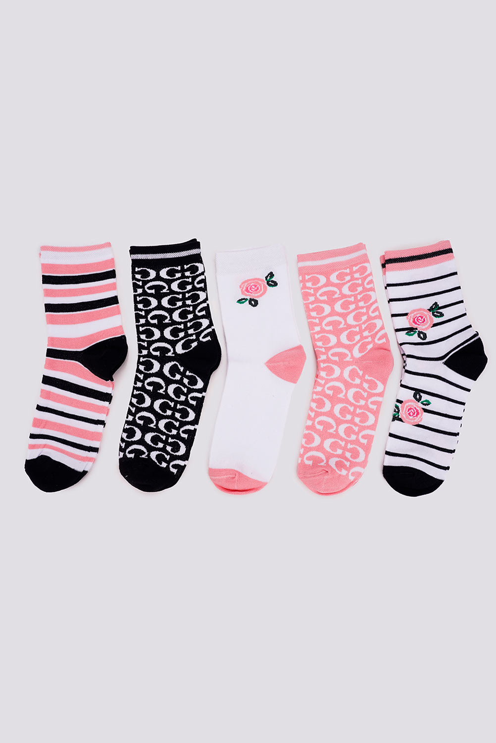 Набор из 5 пар высоких носочков с различными вариациями дизайна.