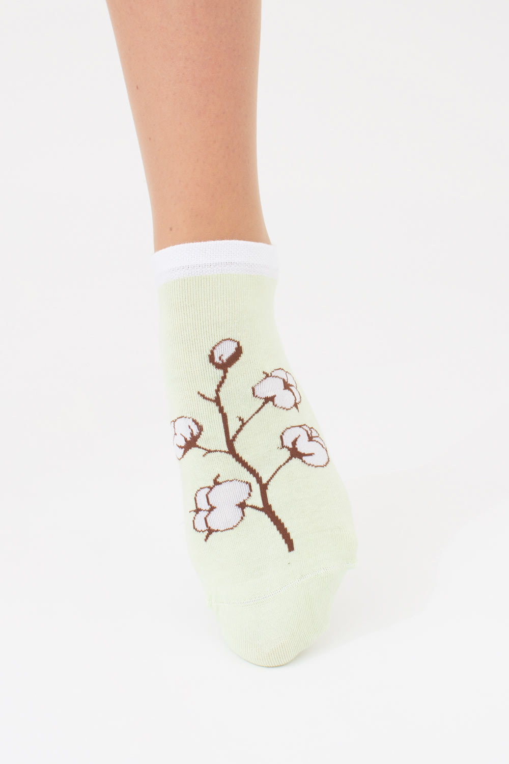 Особый акцент — веточка хлопка, придающая носкам особый шарм.