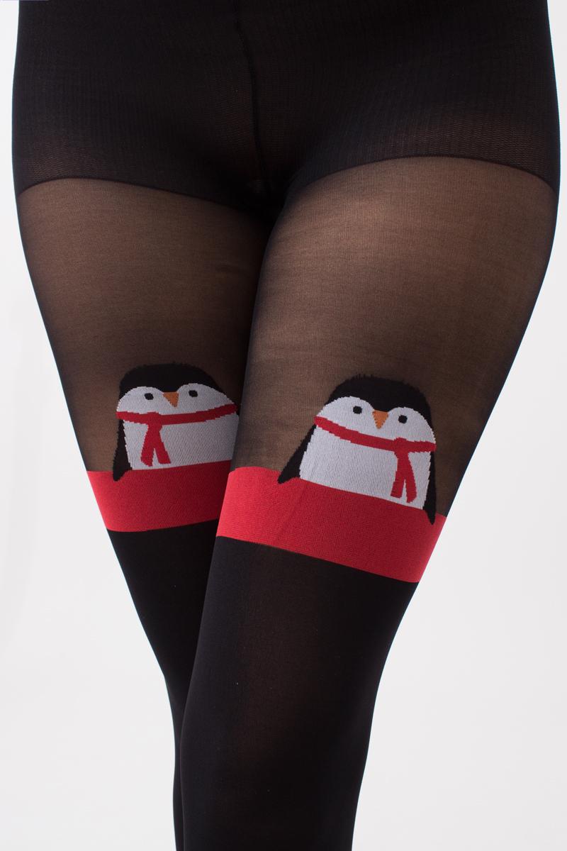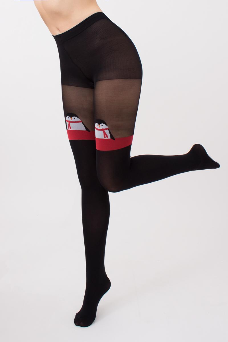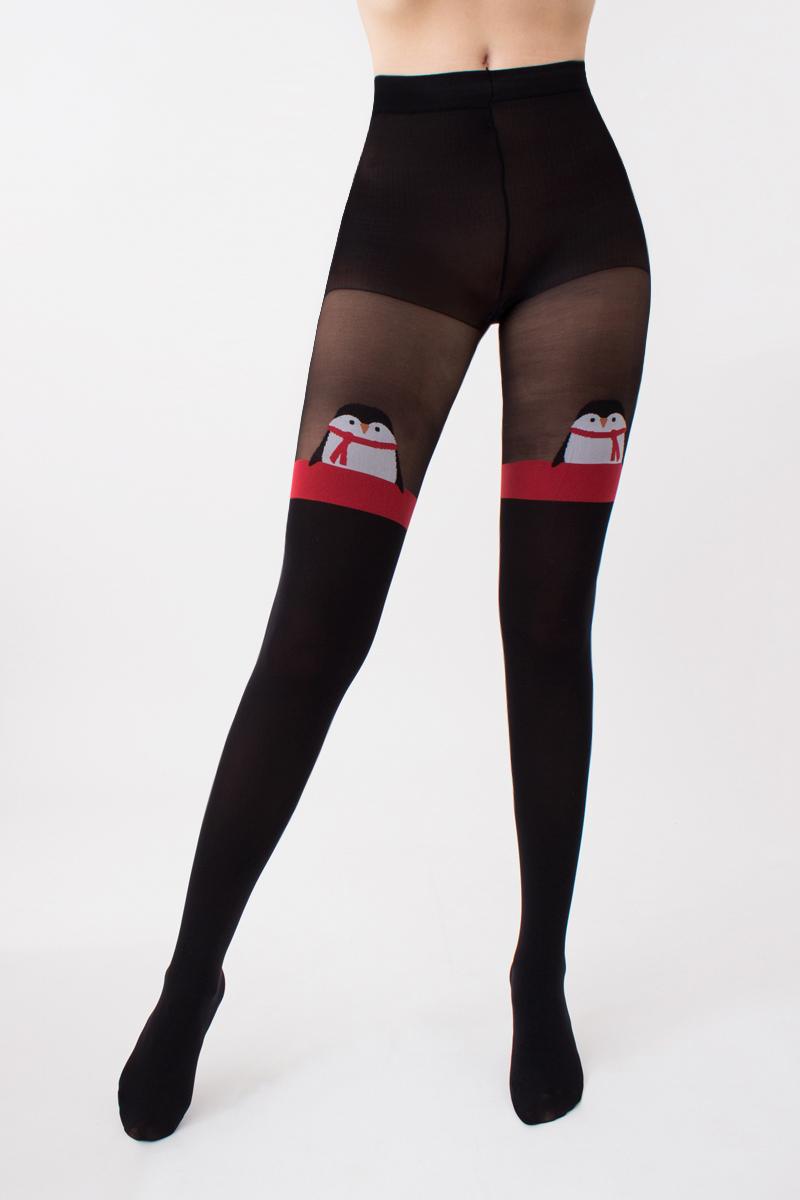 Колготки с рисунком новогодние Penguin tights 60 den Giulia (black)