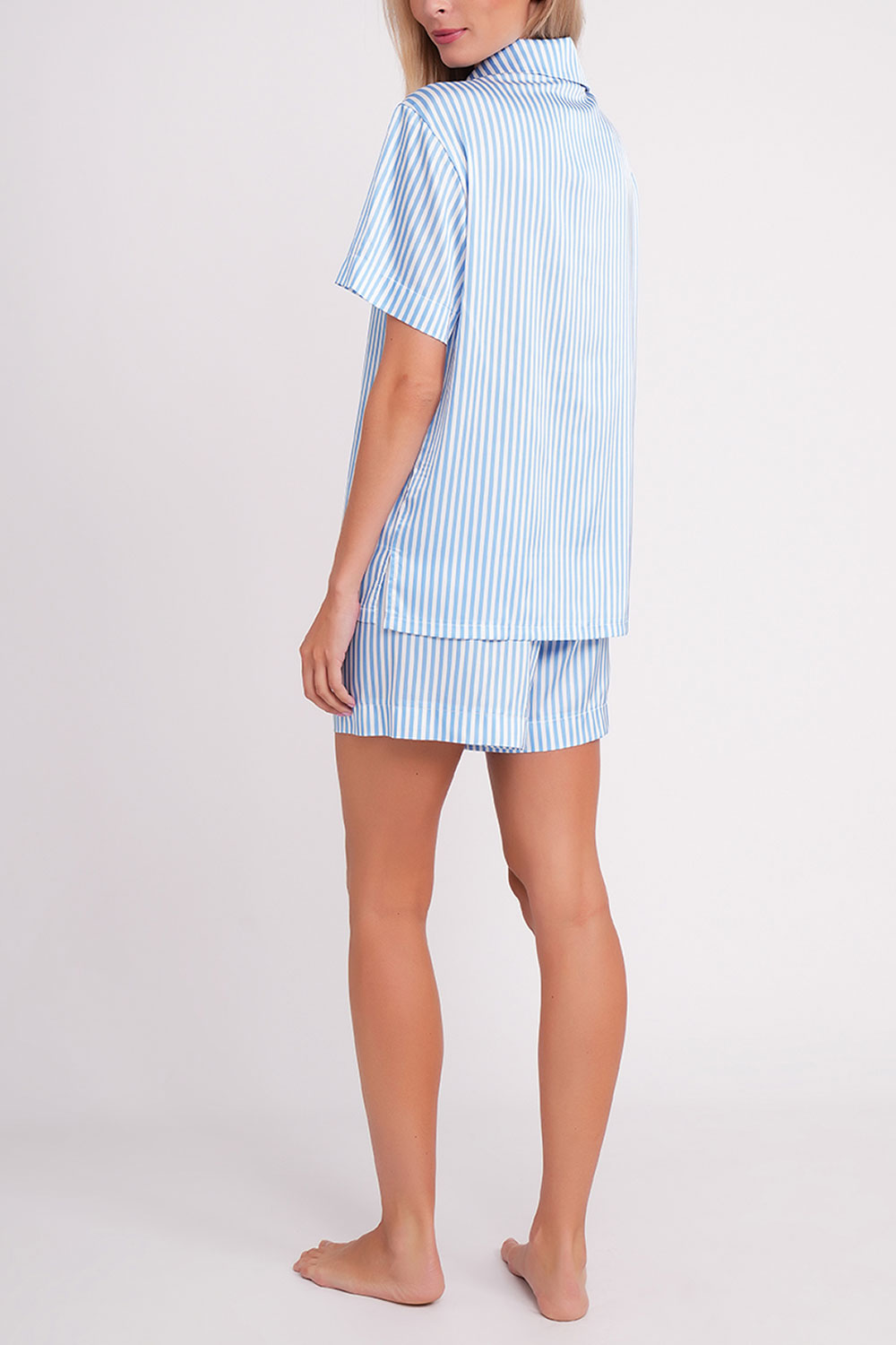 Мягкий шелк нежно прилегает к телу, а стильная полоска придаёт изделию современный и изысканный вид, делая эту пижаму идеальным выбором для домашнего использования.