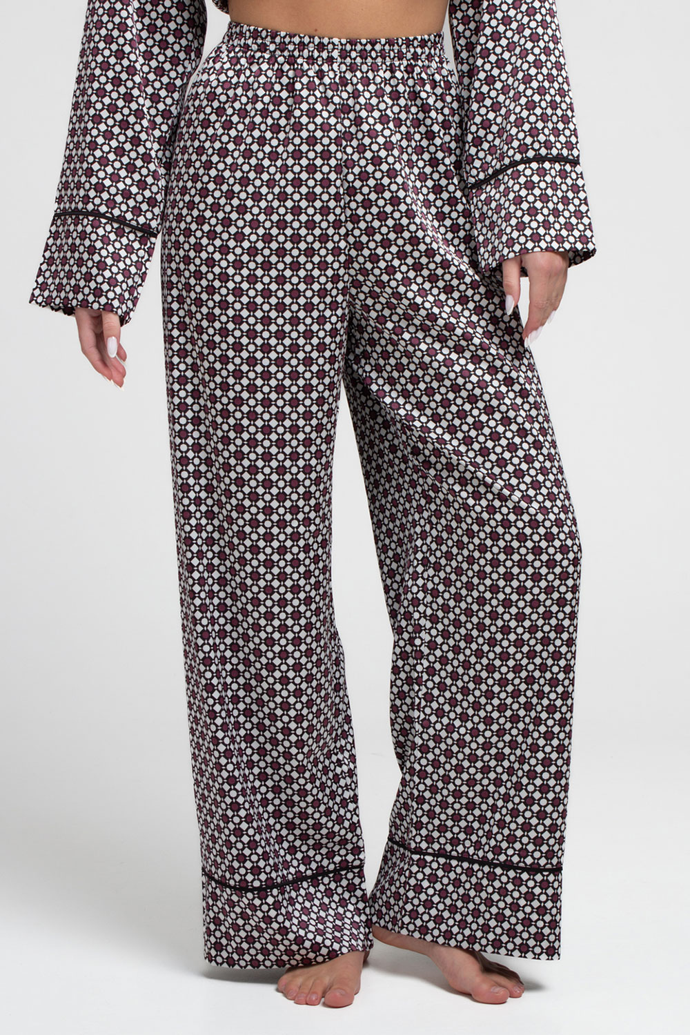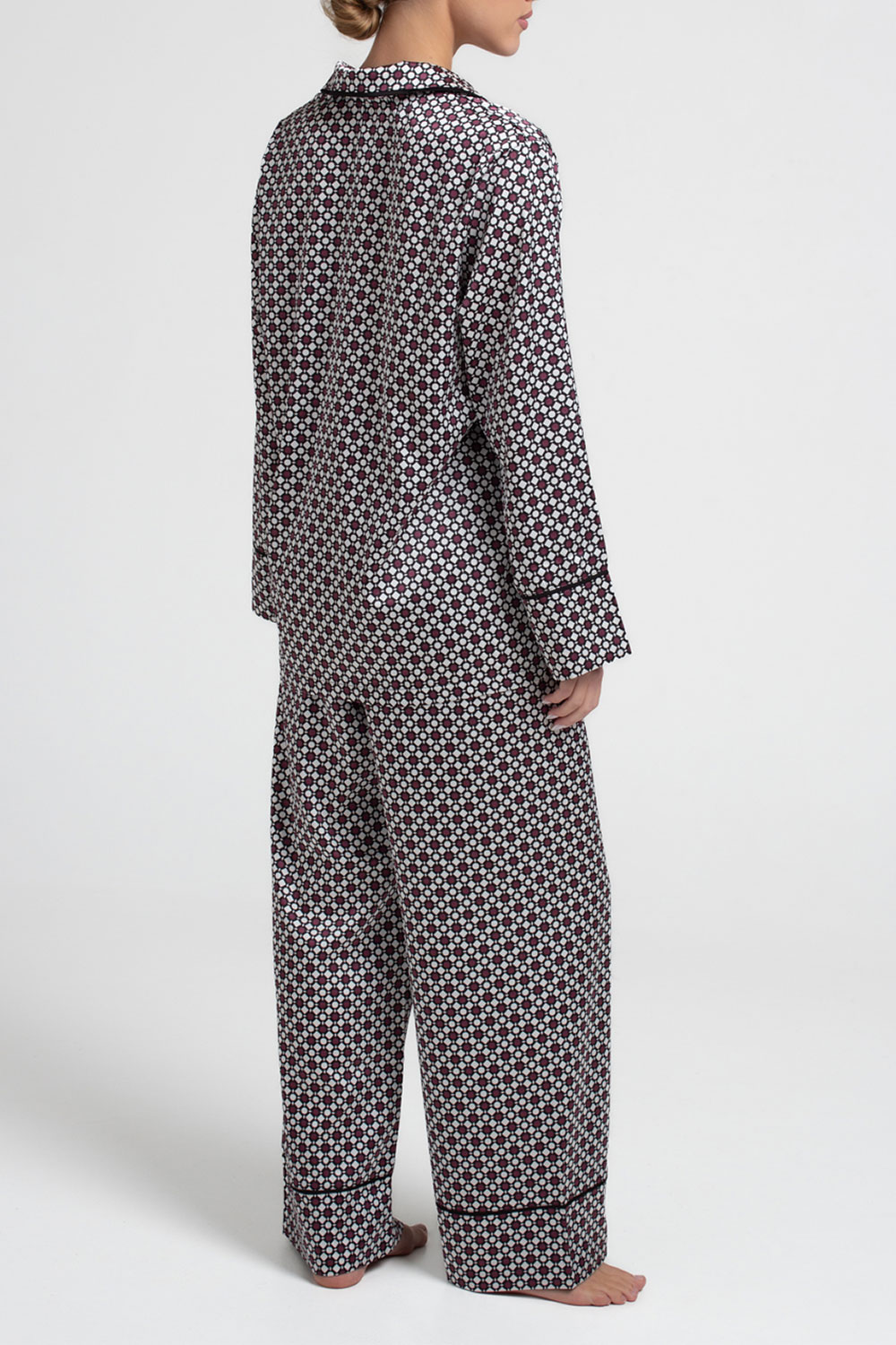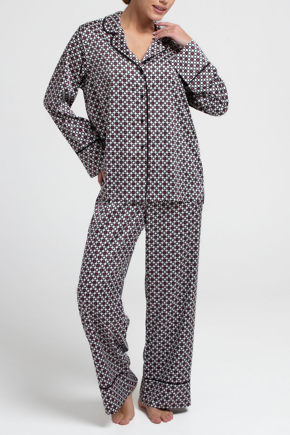 Шелковая пижама NOIRE 5507/050 Giulia (white/crushed berry rhomb), белый/бордовый