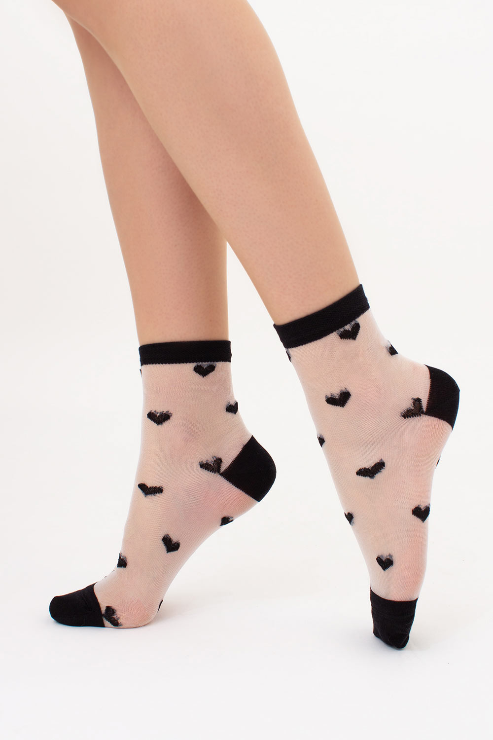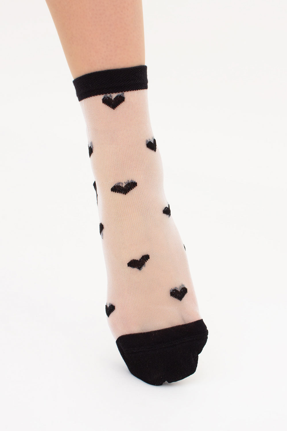 Прозрачные женские носки в сердечках WS2 CRISTAL 074 Giulia (black), черный
