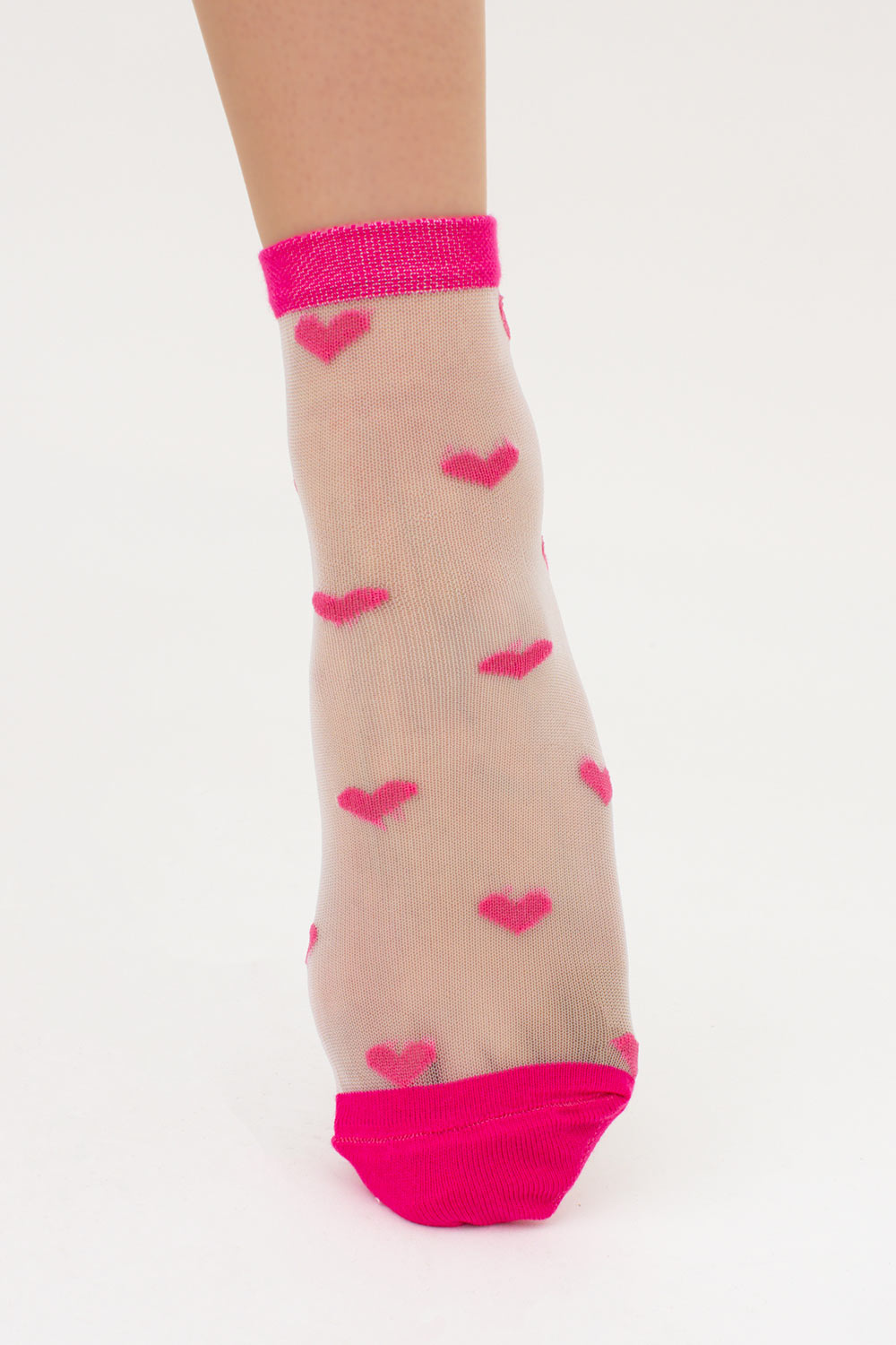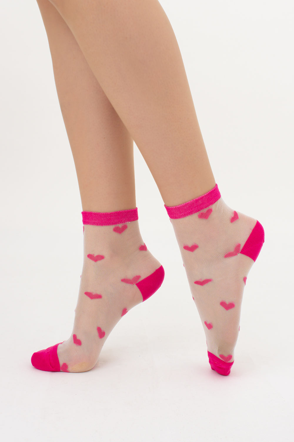 Прозрачные женские носки в сердечках WS2 CRISTAL 074 Giulia (fuchia), розовый