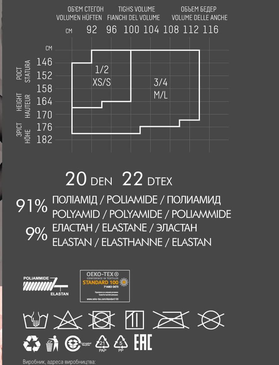 Тонкие фантазийные чулки с оплетенным эластаном, плотностью 20 ден. У модели укрепленный мысок и кружевная силиконовая коронка, вся нога украшена тканым узором "горошек". Эластан, обкрученный полиамидом, обеспечивает хорошую растяжимость модели и придает ей мягкость.