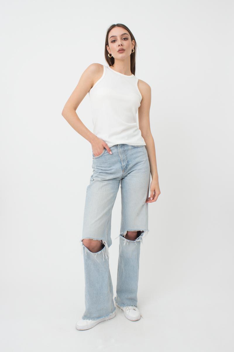 Майка женская в рубчик на широких бретелях Rib casual 3810/010 Giulia (milk)