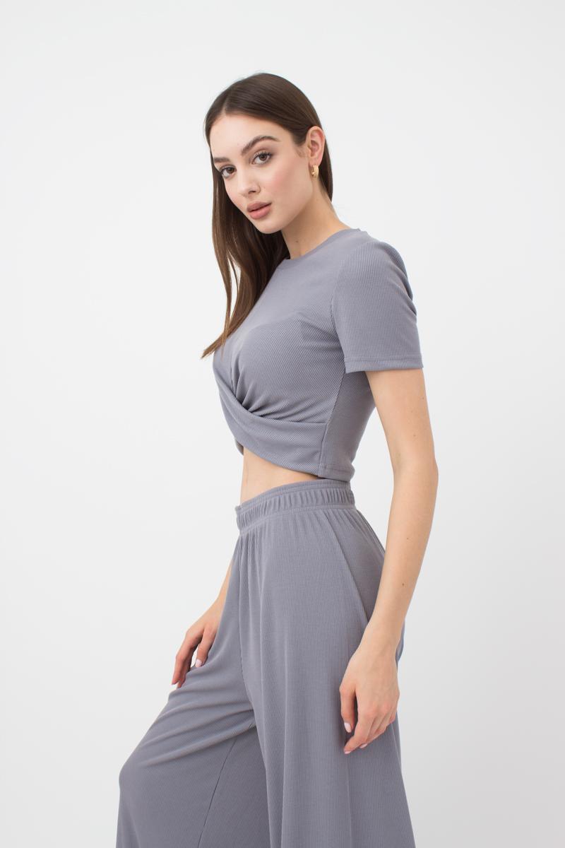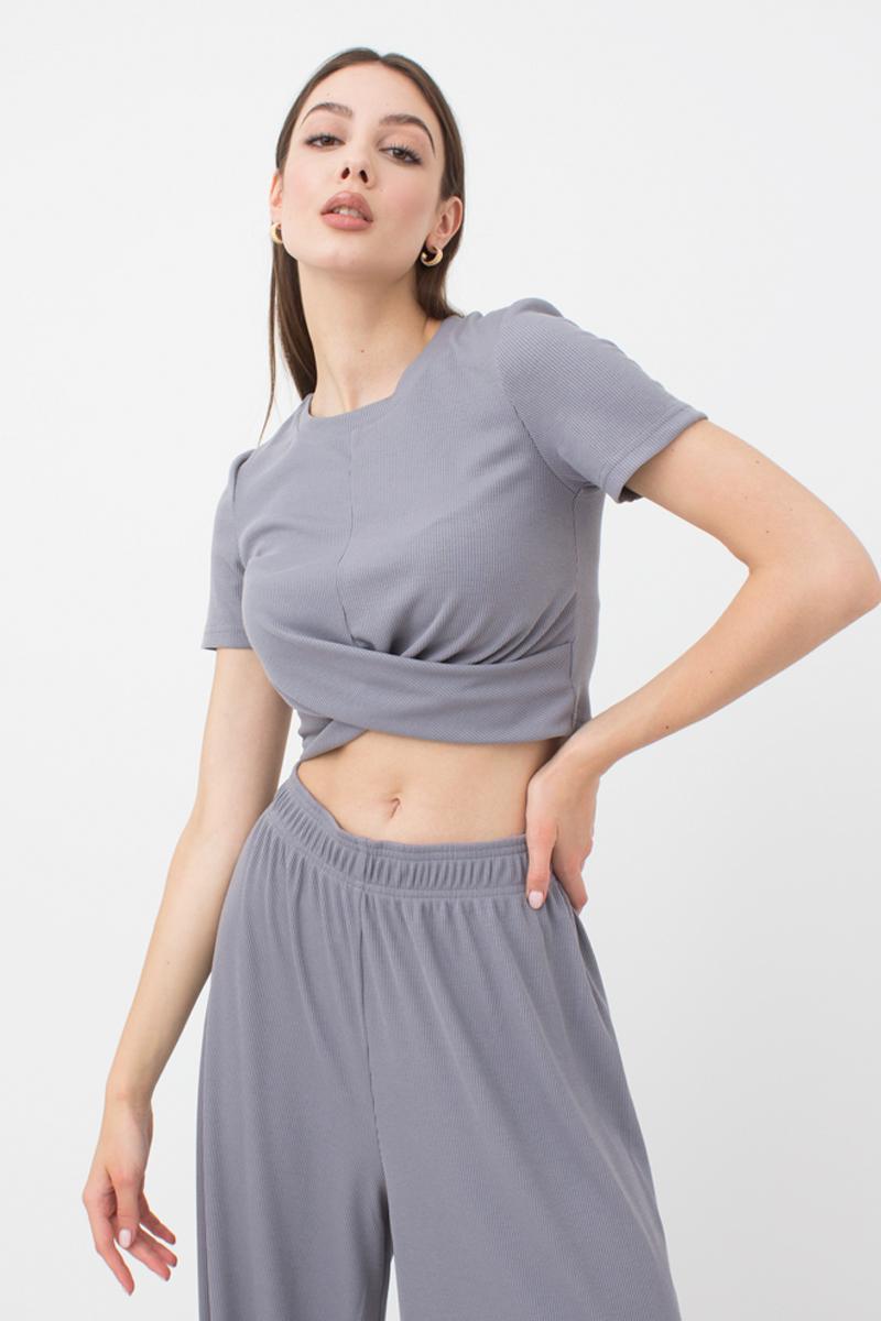 Топ в рубчик с переплетом Rib casual 4105/010 Giulia (grey)