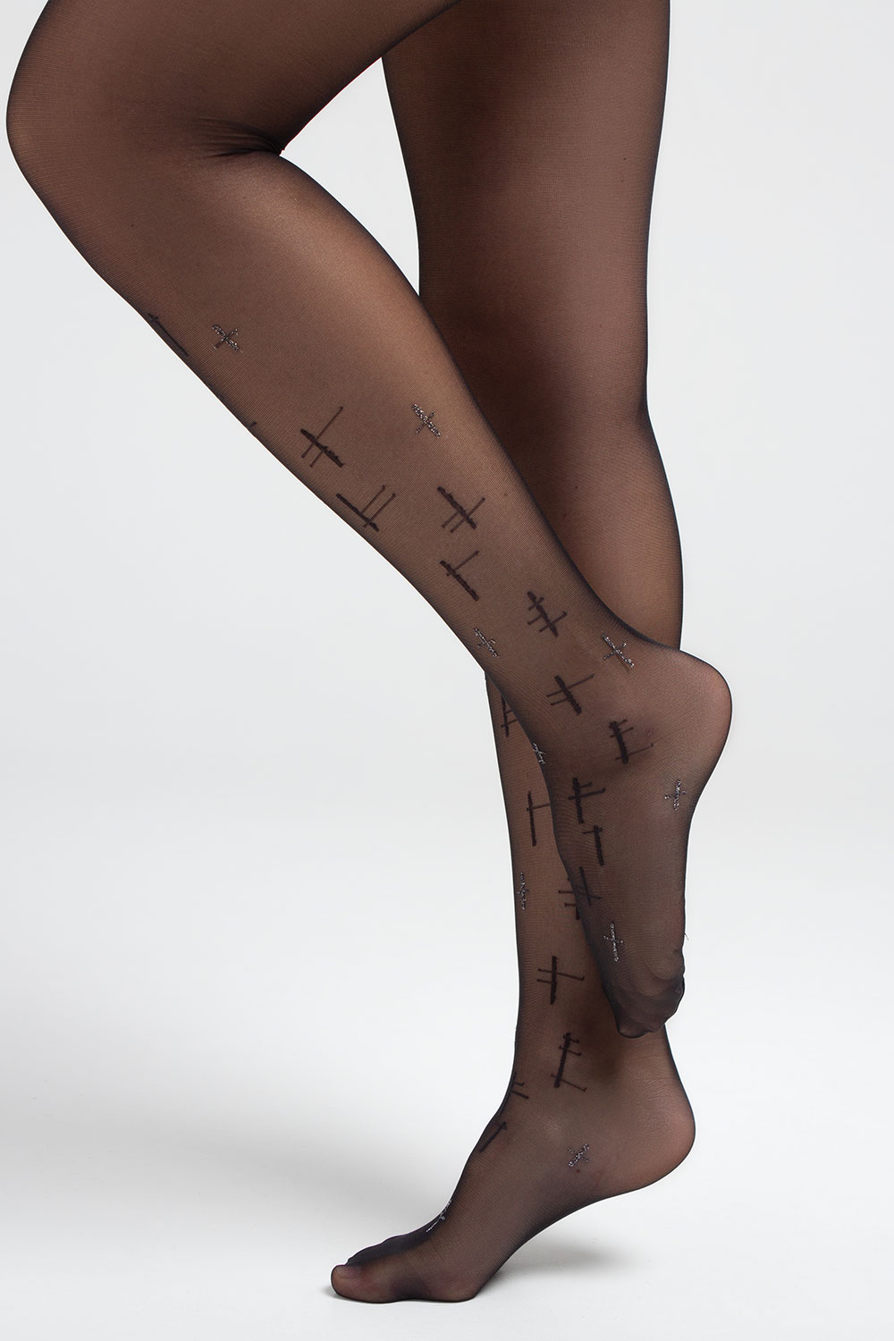 Фантазийные колготки с изысканным узором и деликатным блеском люрекса.