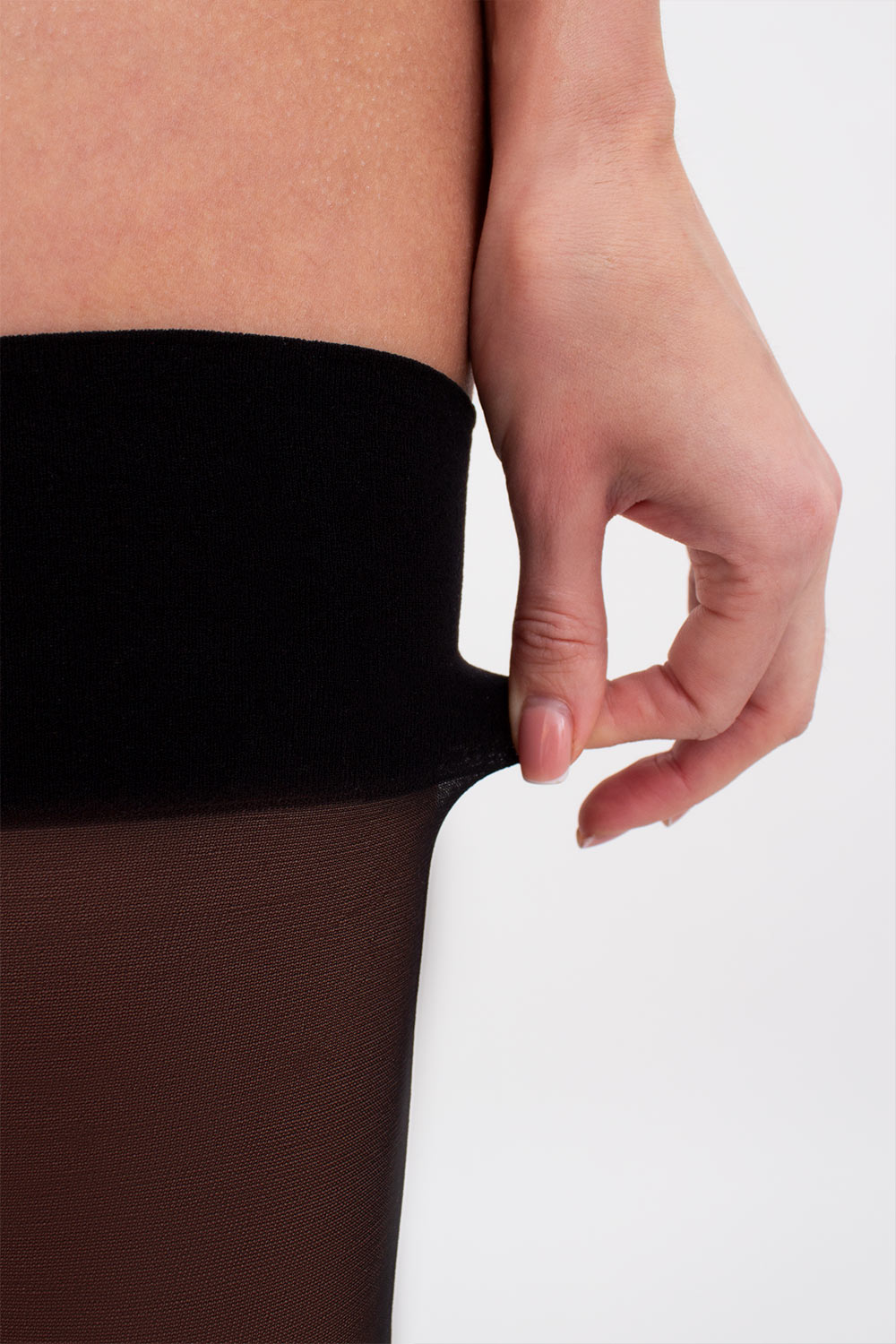 Нижняя часть чулок дополнена формованной пяткой и полупрозрачным мыском.