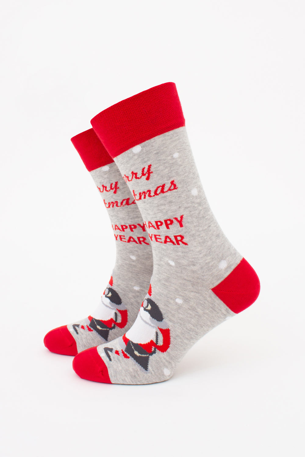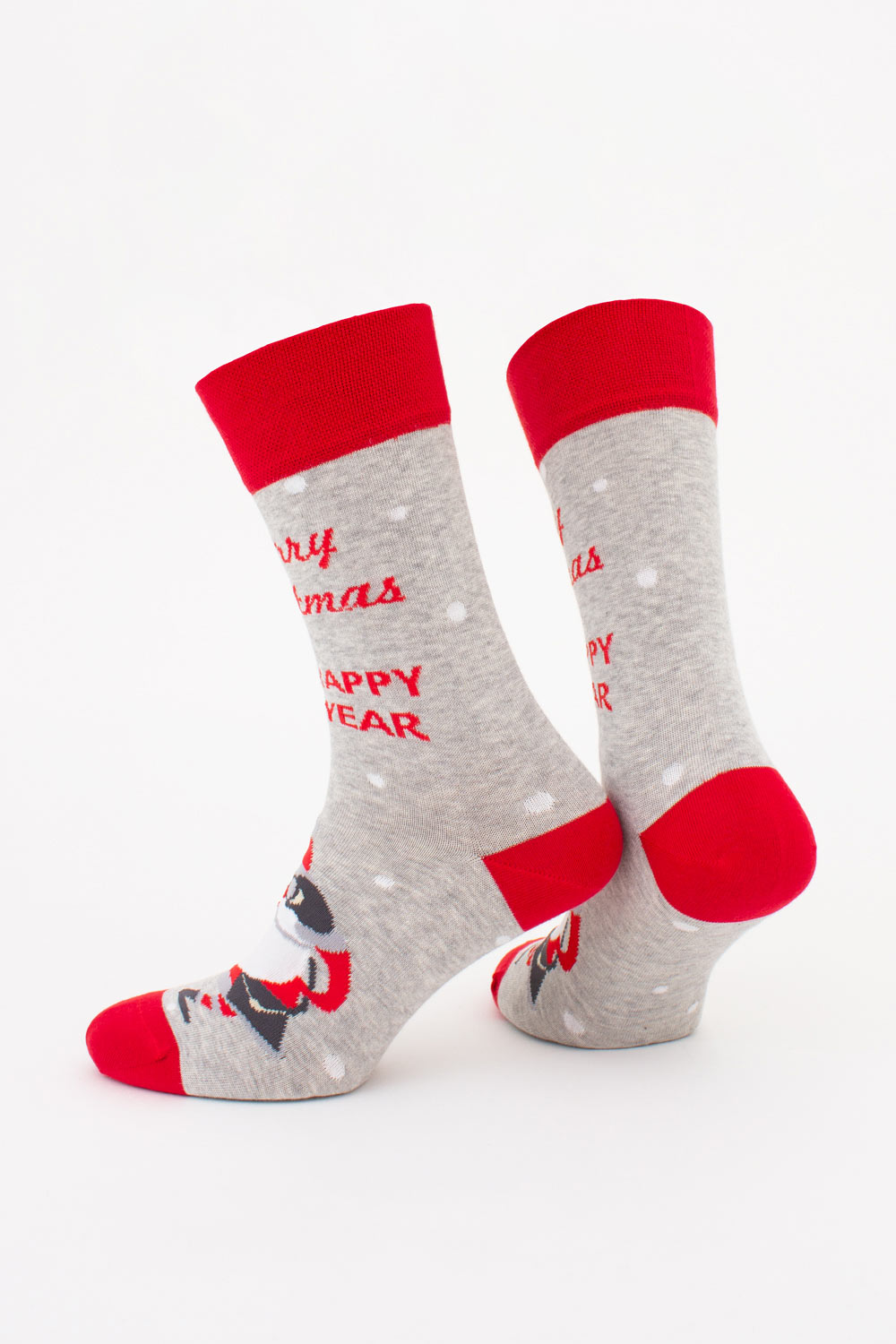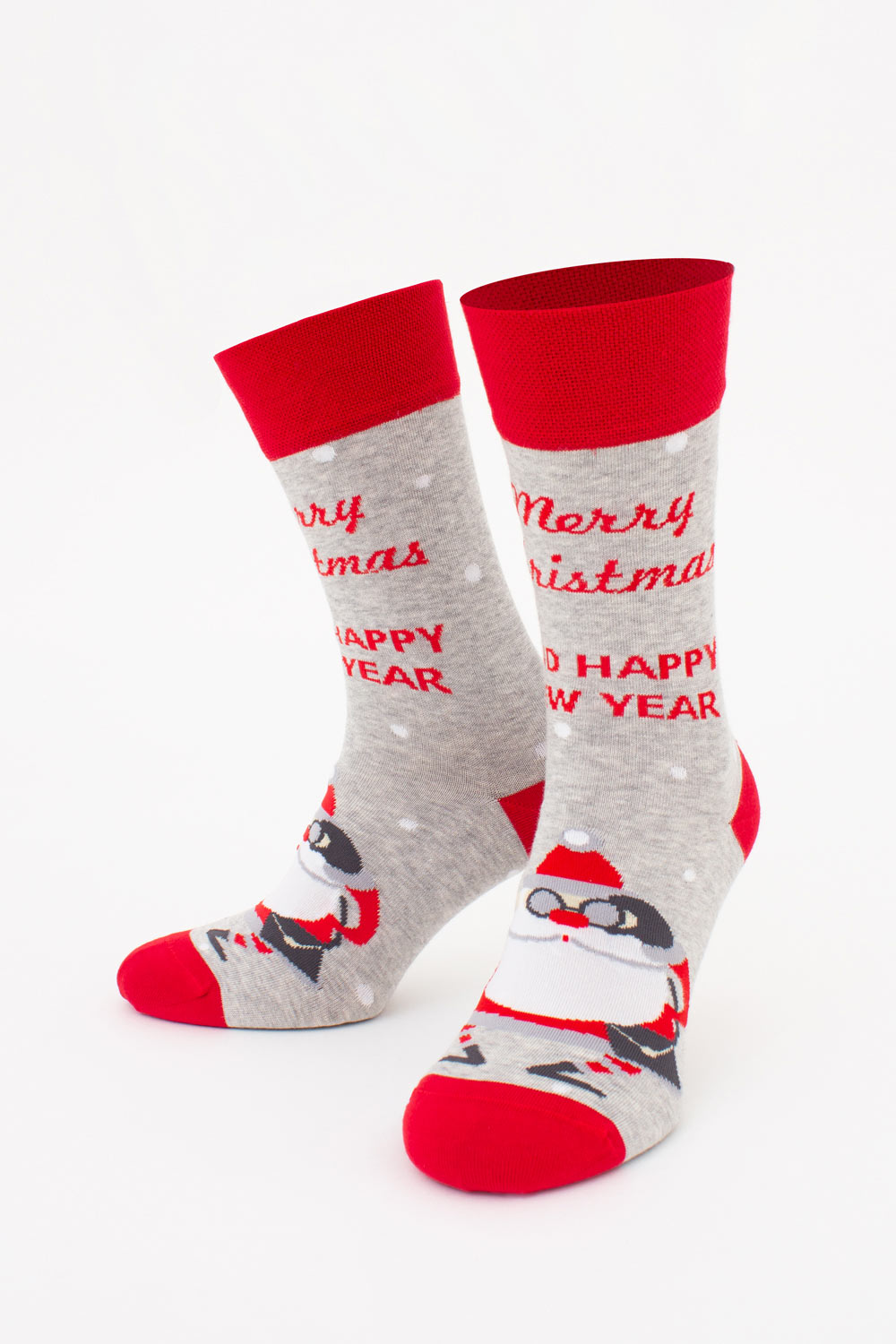 Мужские носки из хлопка с новогодним рисунком и тематической надписью.