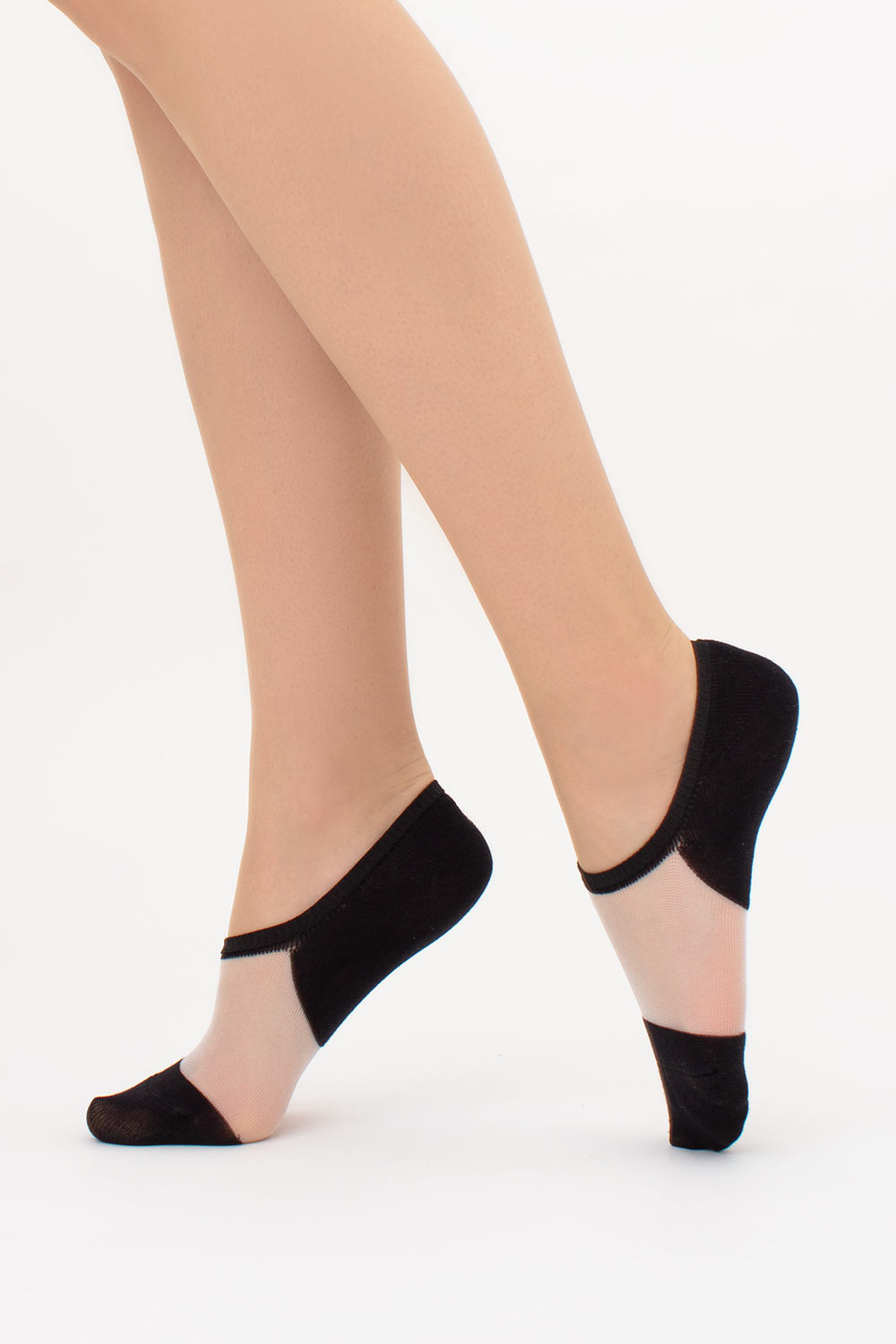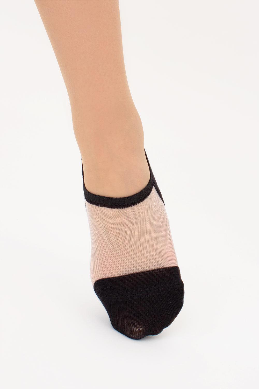 Хлопковая пятка и мысок добавляют мягкости и комфорта, а прозрачная декоративная вставка из мононити придаёт лёгкость и изящество.