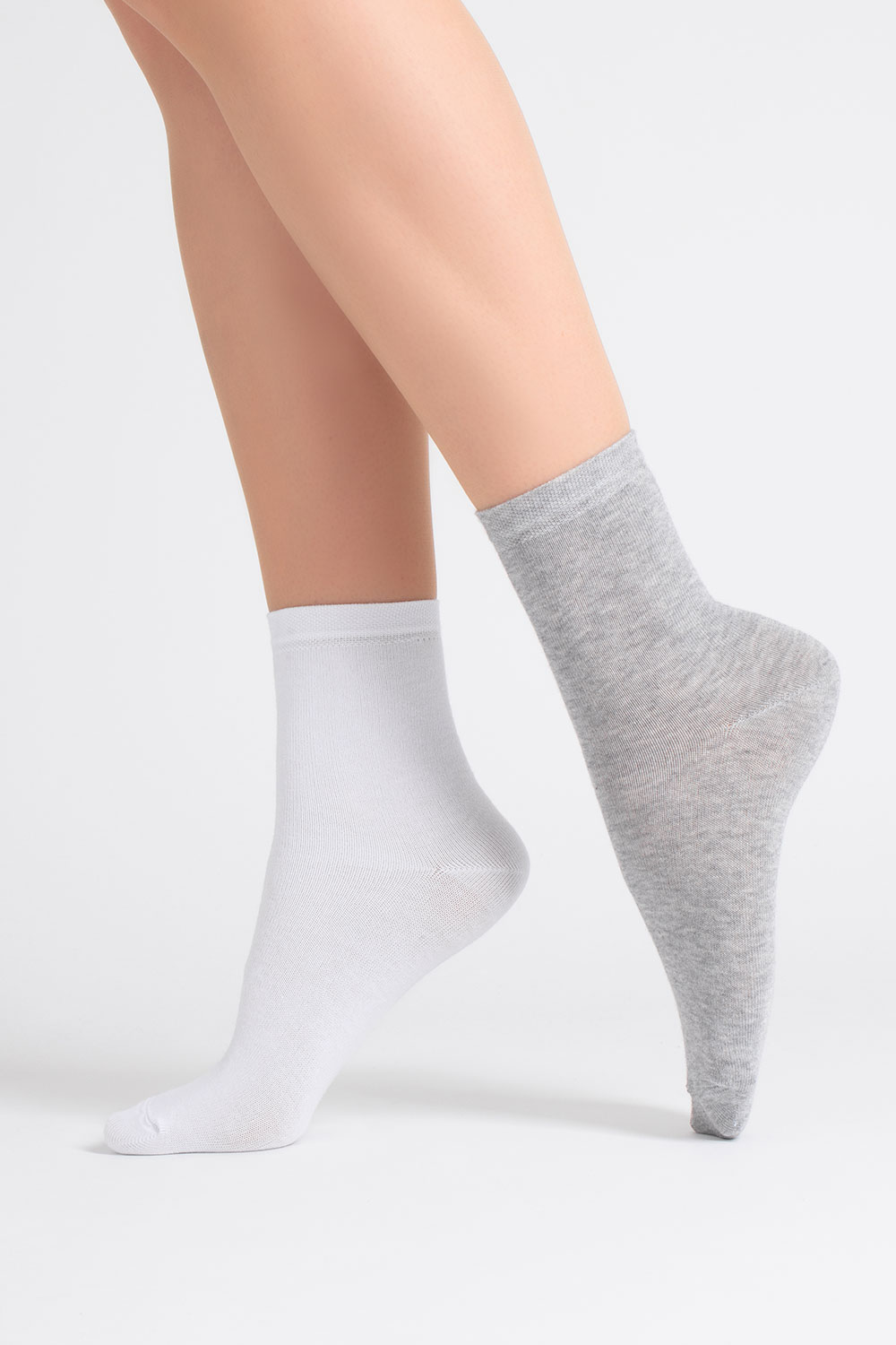 Носки женские классические (2 пары) WS3 CLASSIC Giulia (light grey melange/white), серый/белый
