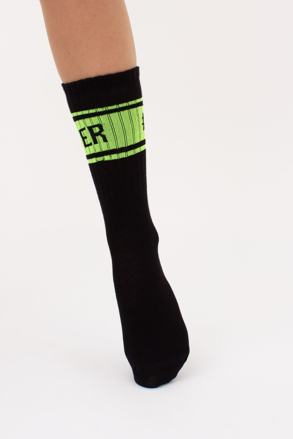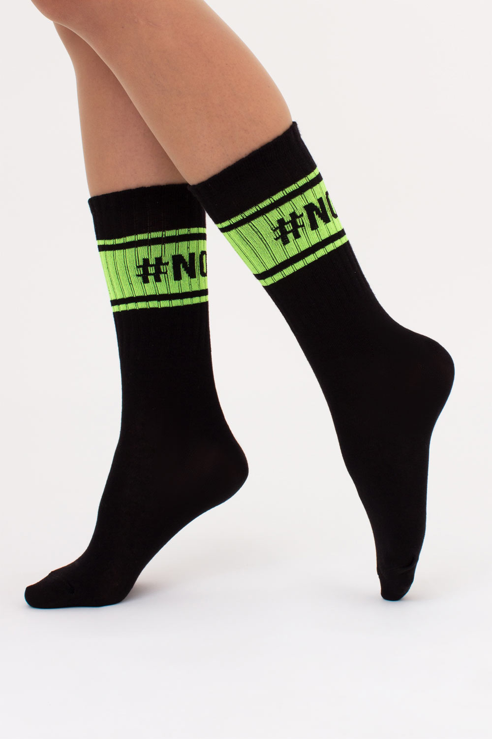 Носки женские высокие с принтом WS4 text strong 012 Giulia (black/yellow neon), черный