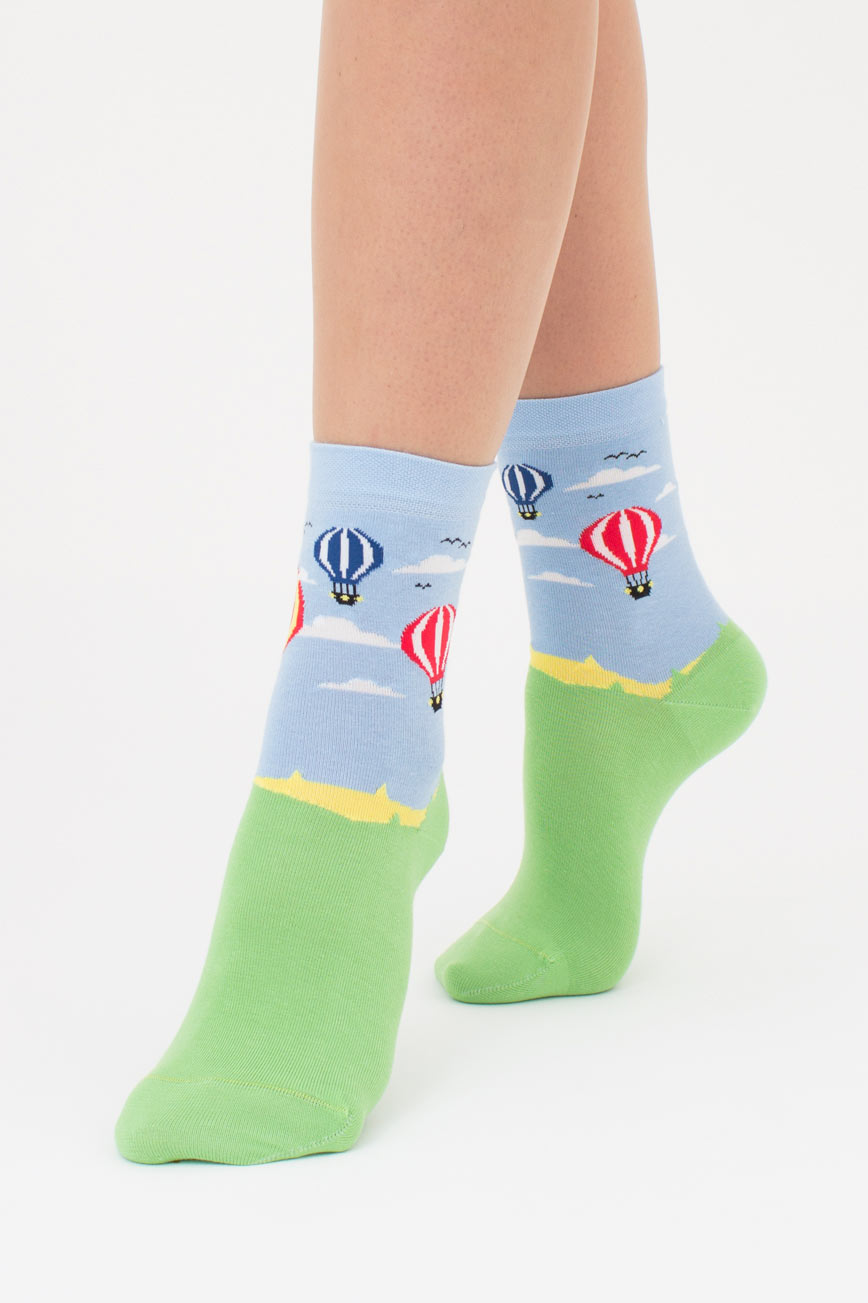 Носки женские с рисунком воздушных шаров WS3 BRIGHT 2413 Giulia (baby blue), голубой
