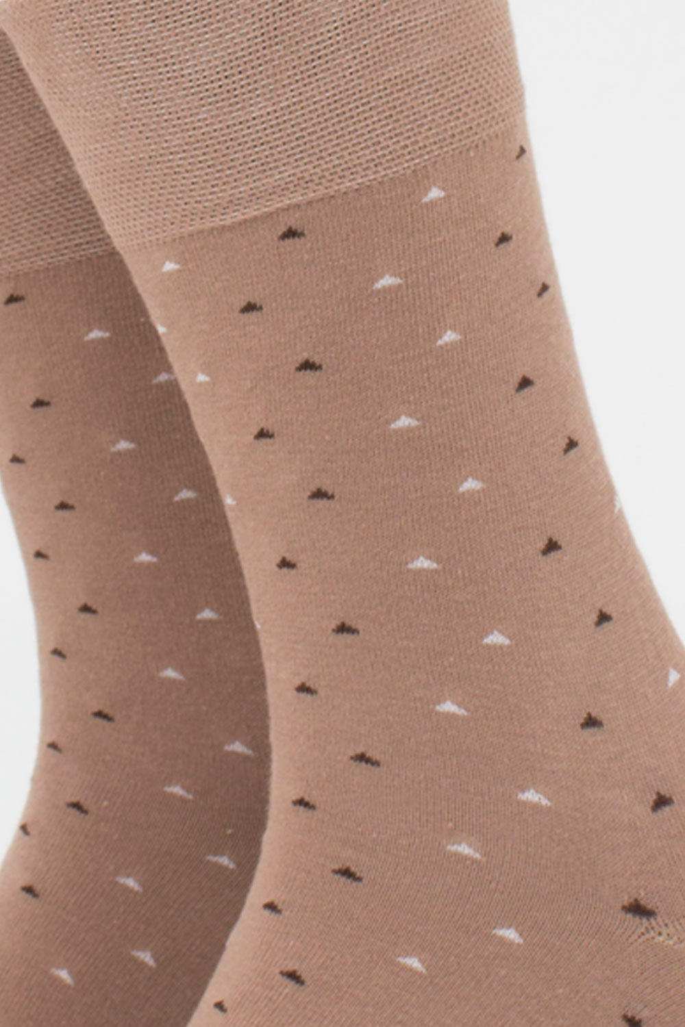 Носки имеют рисунок в виде маленьких треугольников, что придает элегантный акцент.