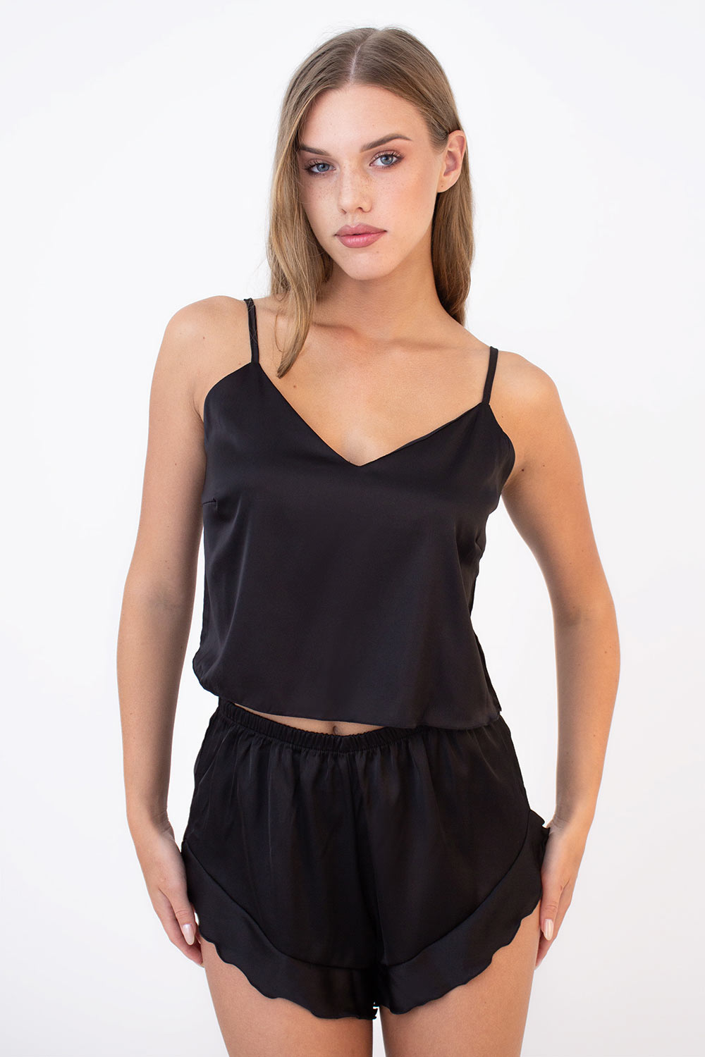 Шелковая пижама "Колокольчик" (майка и шорты), черный