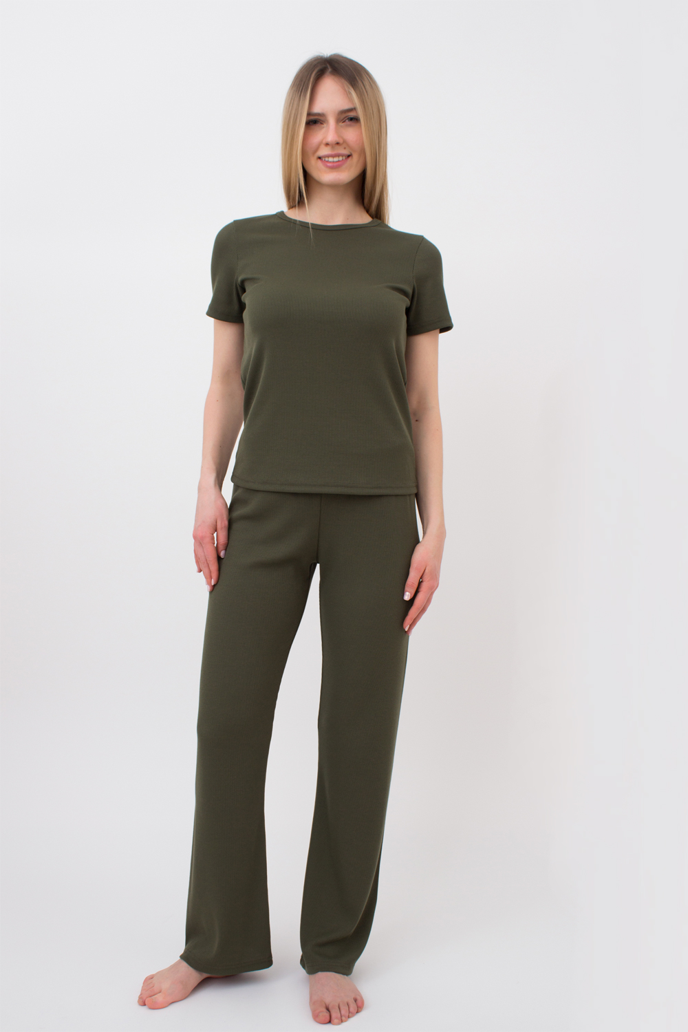 Штаны женские в рубчик RIB 4307/010 Giulia (khakі), зеленый