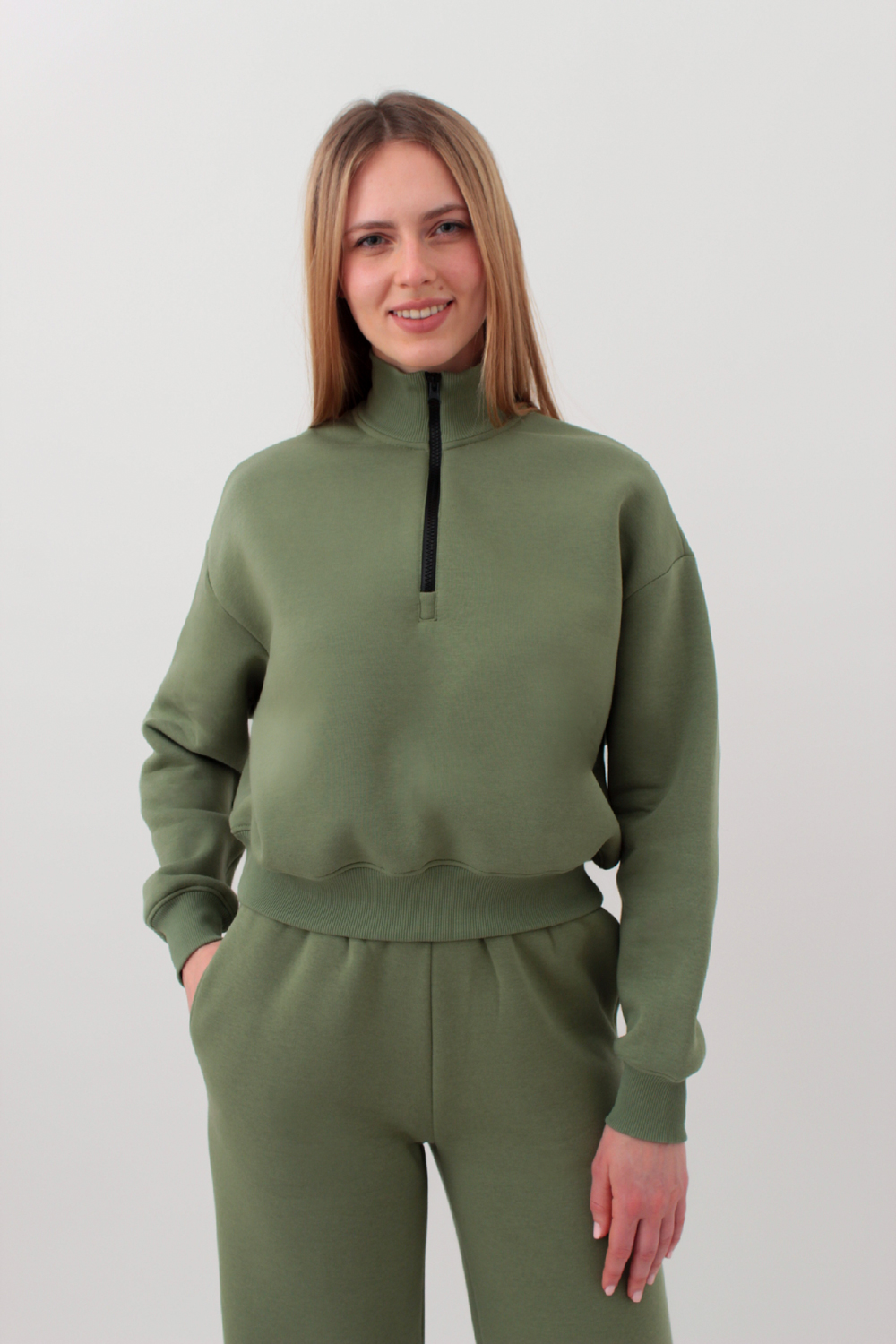 Свитшот на молнии укороченный SPORT STYLE 4416/170 Giulia (olive), зеленый