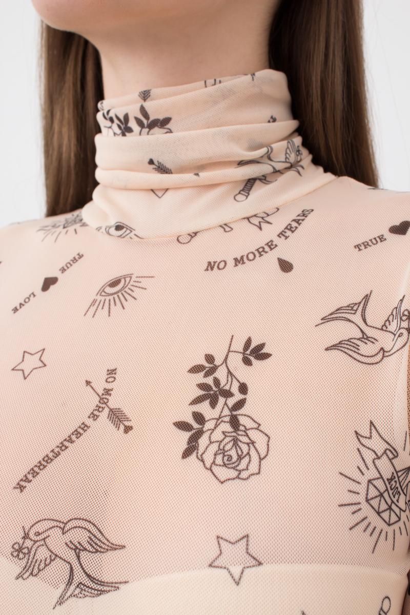 Кроп-топ в сеточку Tatoo 4103/07 (beige tatoo), бежевый