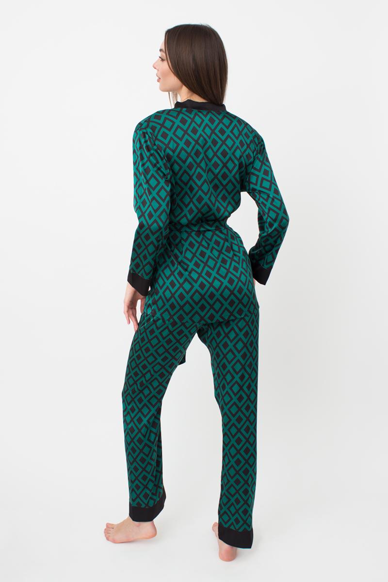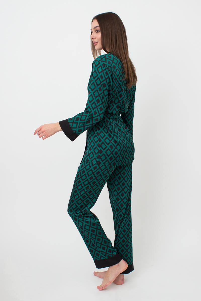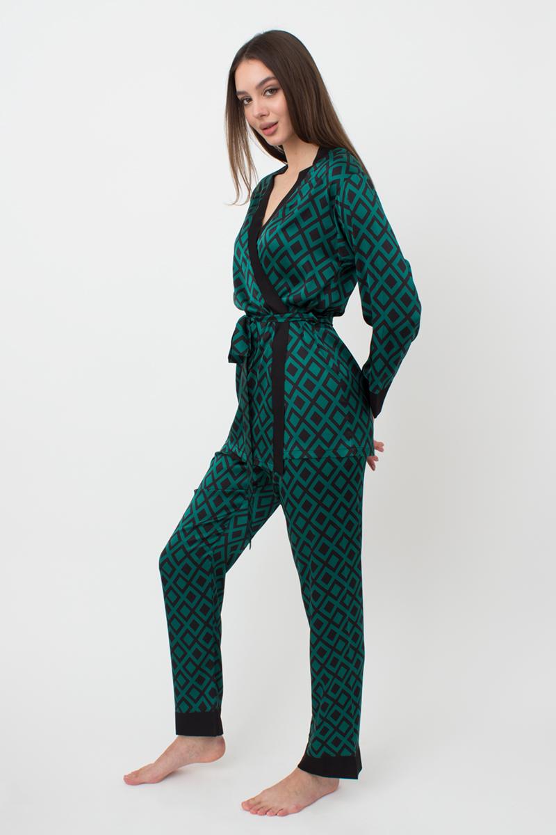 Пижама женская на запах с поясом и штанами Tiffany 5506/050 Giulia (green/black)