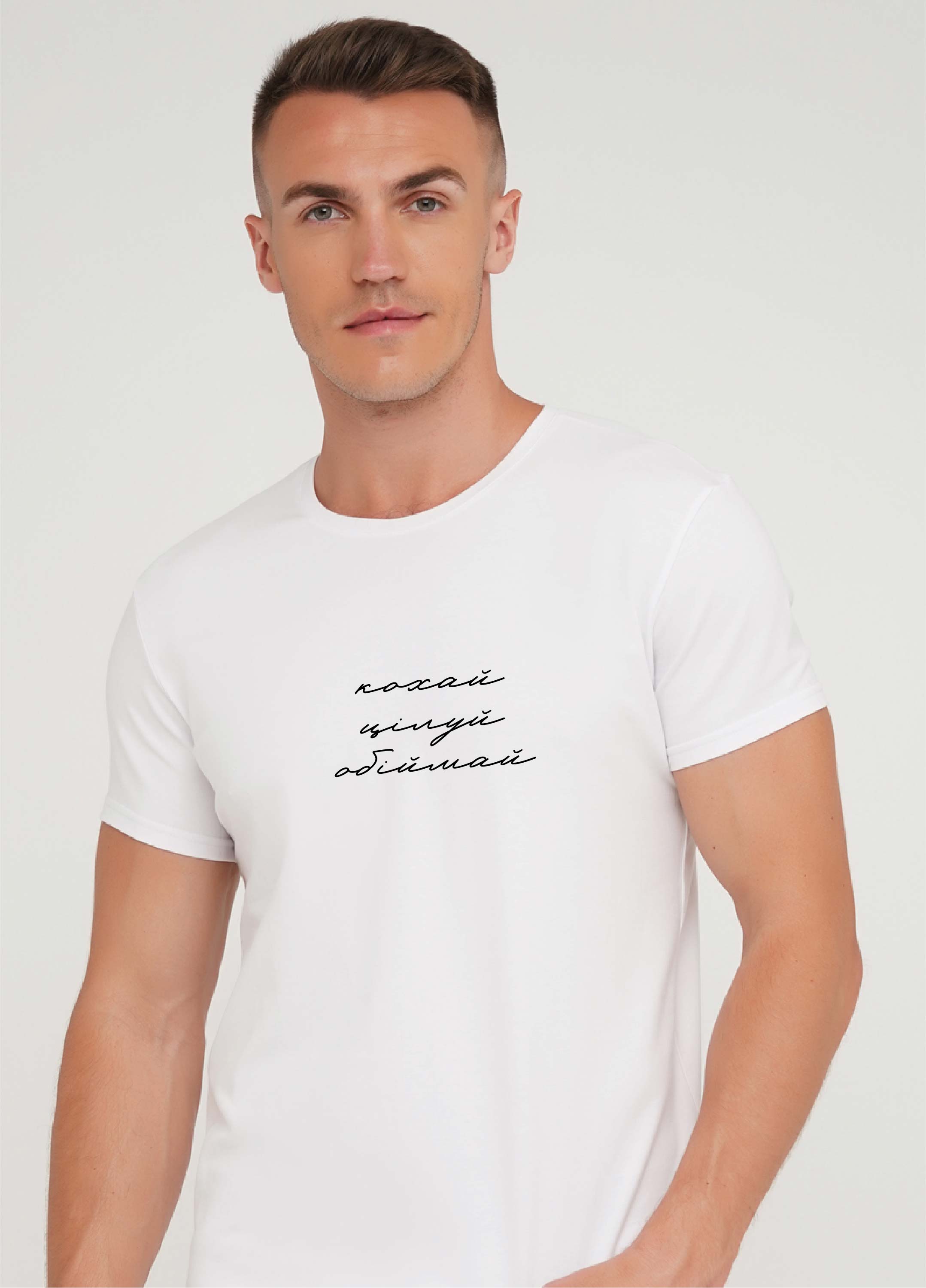 Футболка з написом "Кохай. Цілуй. Обіймай." T-SHIRT MEN UNIQUE PRINT 4601/010, white M00023 (білий)
